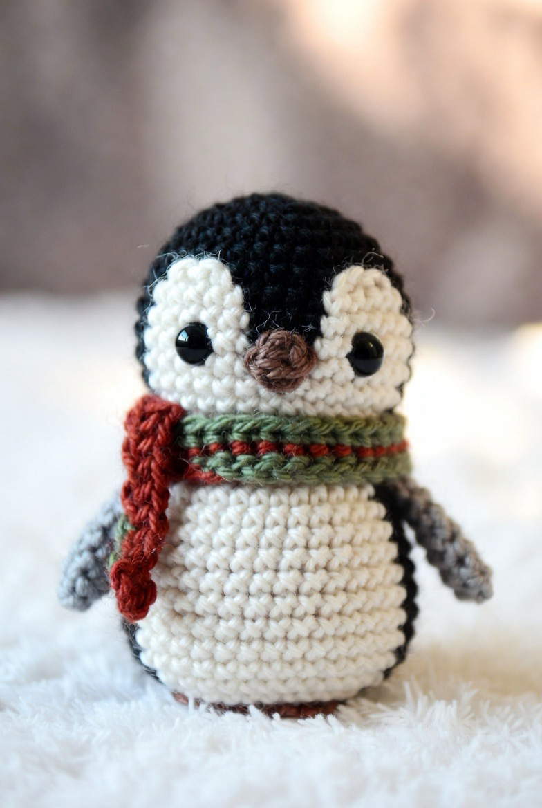 Using fuzzy or velvet yarn, this penguin turns extra soft and cuddly. The texture gives it a realistic, plush-toy feel that kids love to snuggle. The stitches blend together beautifully, creating a smooth and cozy look. While fuzzy yarn can be slightly trickier to work with, the result is absolutely worth it. This pattern is ideal for gift-giving and creates a premium-looking amigurumi piece that feels store-bought but carries that handmade magic.