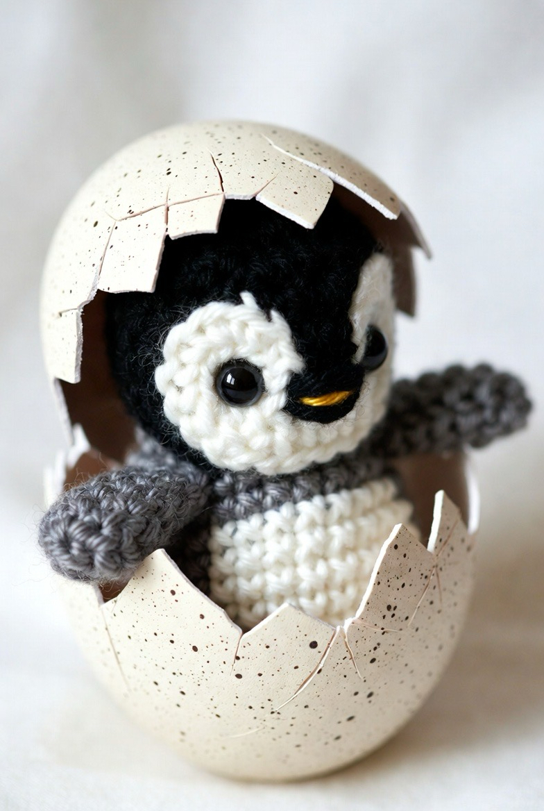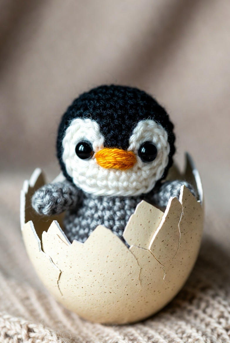This creative design features a baby penguin popping out of a cracked eggshell, making it one of the most playful and imaginative patterns on the list. It’s perfect for spring décor, nursery themes, or Easter gifts. The shell adds texture and visual interest while keeping the penguin itself simple and sweet. This pattern is a great way to practice working with multiple small pieces and assembling them neatly. The finished project feels like a tiny scene in crochet form, adorable and eye-catching.