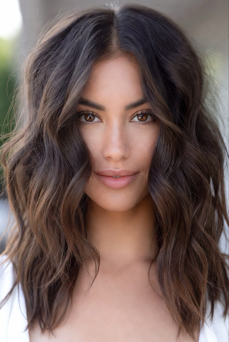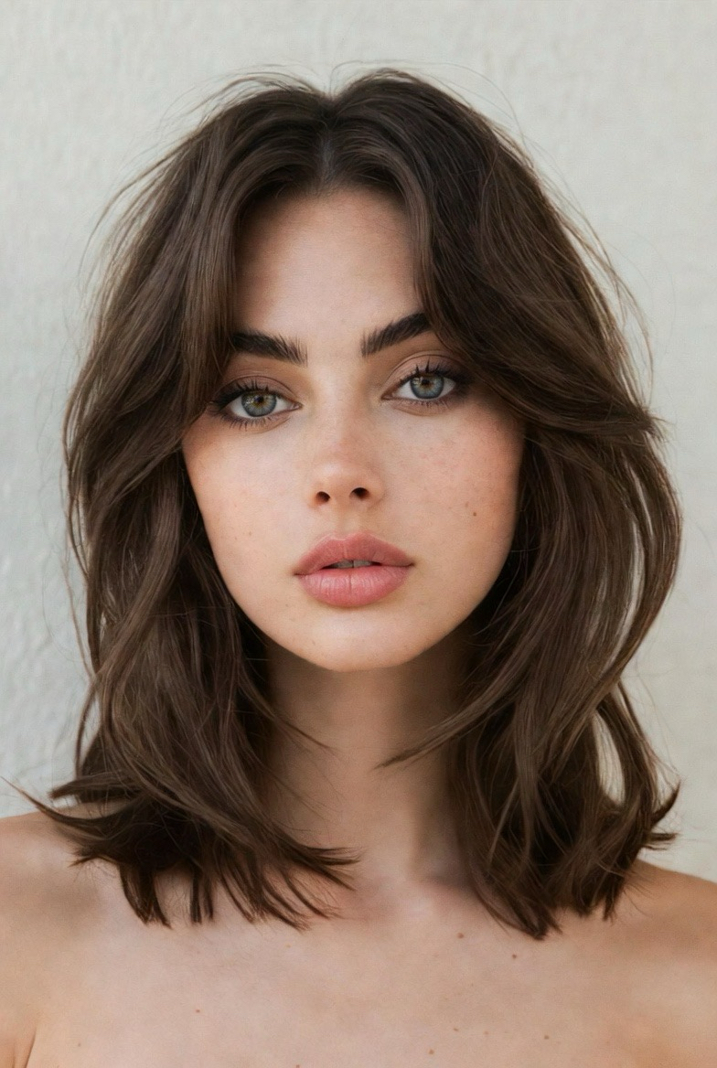 This cut sits right at the collarbone and features long, blended layers for softness and flow. It’s one of the most flattering medium haircuts for all face shapes because it elongates the neck and highlights your features. In 2026, the focus is on natural texture, soft beach waves, loose bends, and touchable movement. It’s the perfect balance between casual and elegant, ideal for everyday wear and special occasions alike.