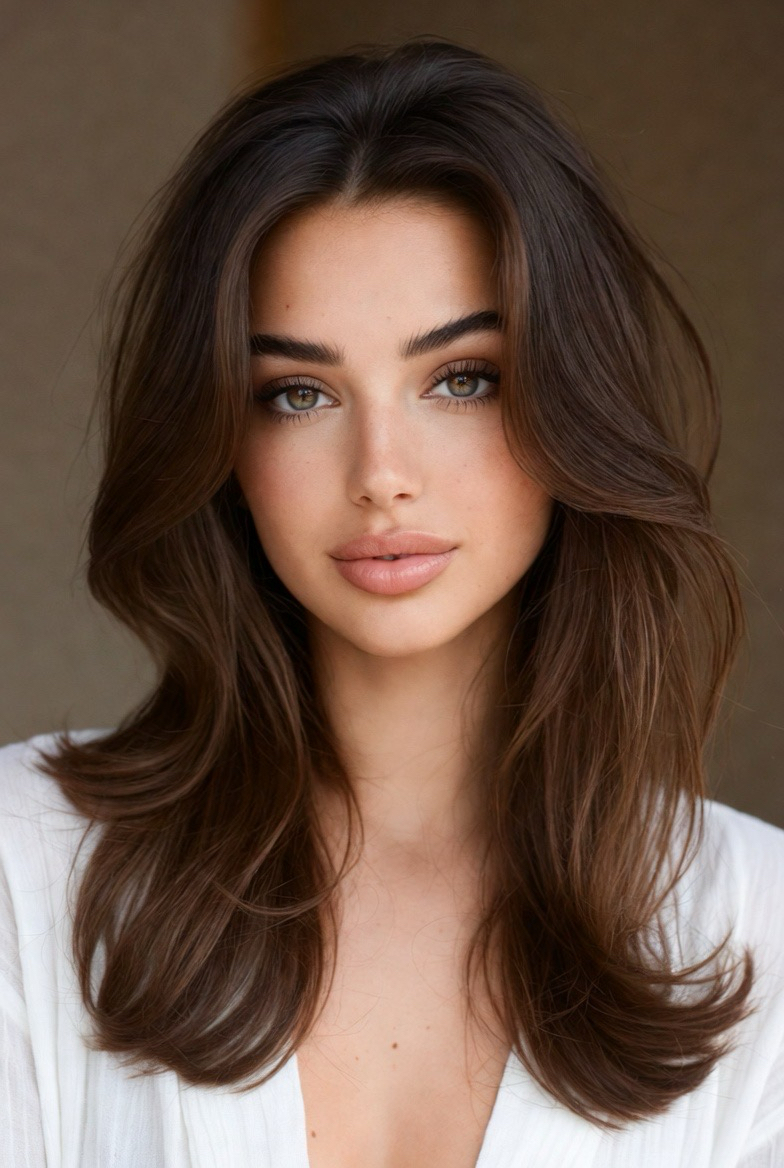 This is the ultimate “rich hair” look for 2026. A medium-length cut with long, rounded layers designed for blowouts gives you volume, shine, and bounce. It’s perfect for women who love polished styles and salon-worthy finishes. With a round brush and a little heat, this haircut transforms into a glamorous, timeless look that never goes out of style.