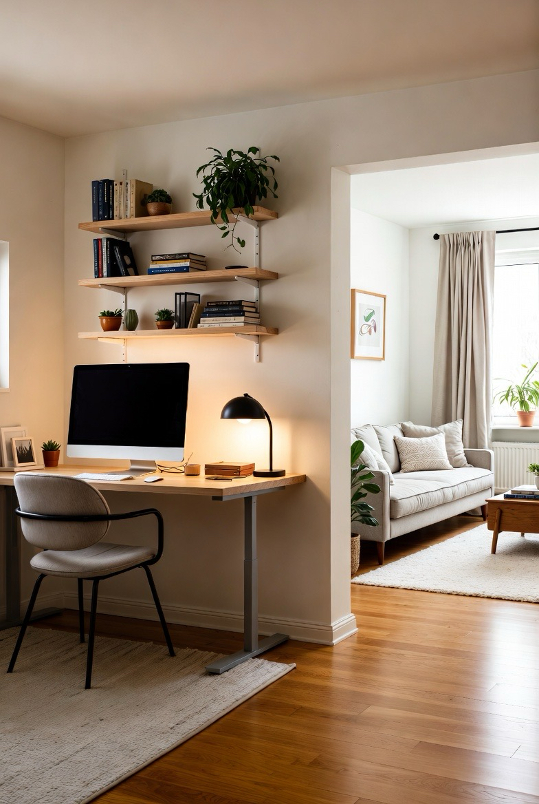 Creating a clear boundary between work and home life improves productivity. Even in small homes, defining a specific work zone helps your brain switch into work mode. Use rugs, shelving, or a desk facing a wall to visually separate the space. This structure supports focus and encourages better work-life balance.