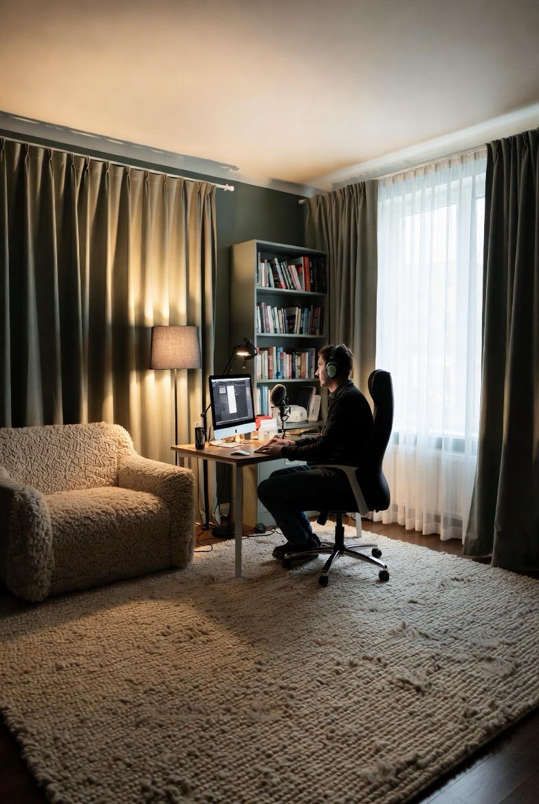 For busy households, noise control is essential. Rugs, curtains, and soft furnishings absorb sound, creating a quieter environment. Noise-canceling headphones also help maintain focus during meetings or deep work sessions.