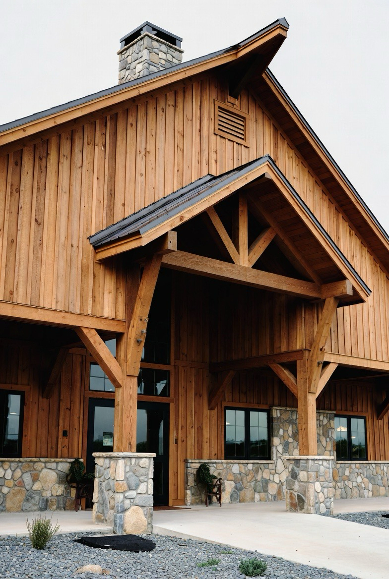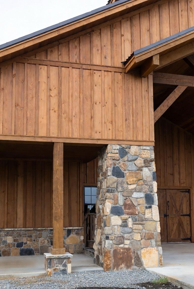 3.) Rustic Wood & Stone Barndominium