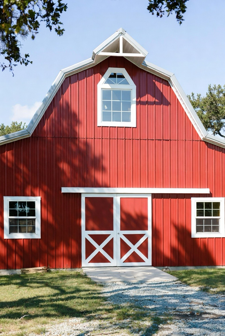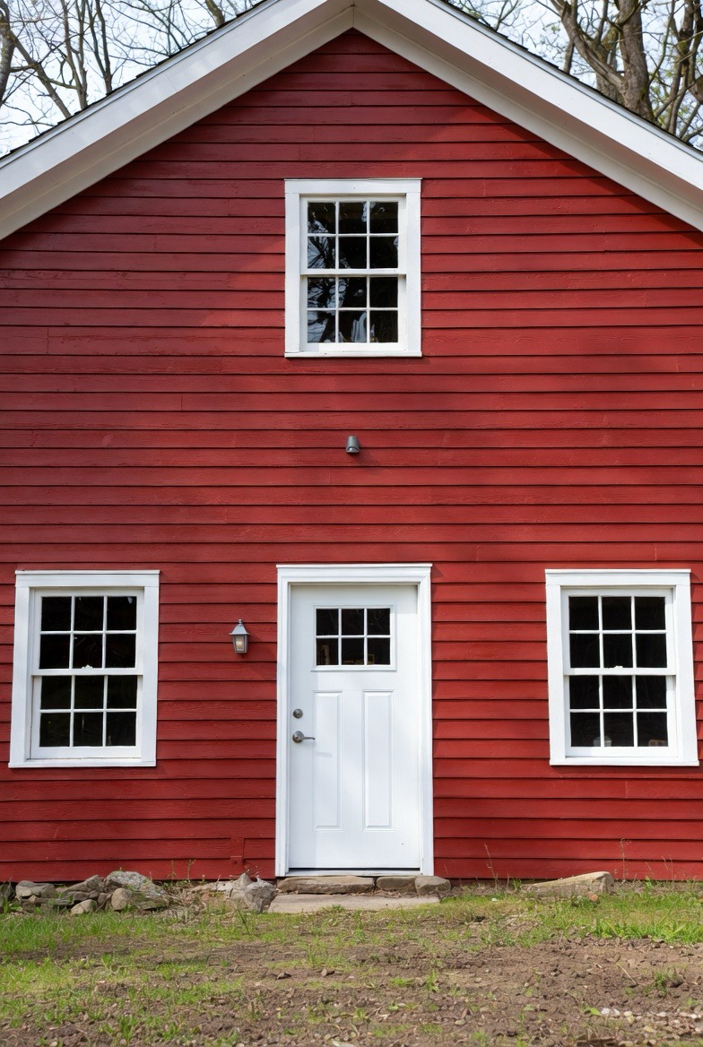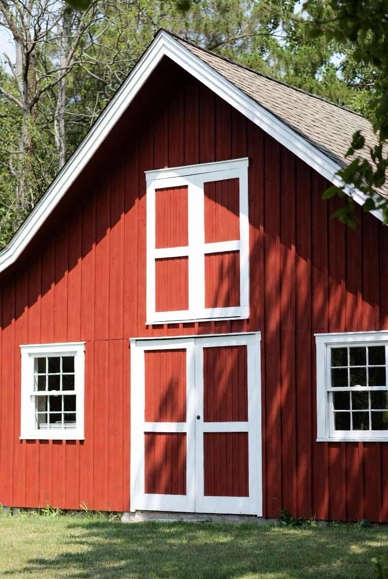 4.) Barn-Style Red Exterior with White Trim