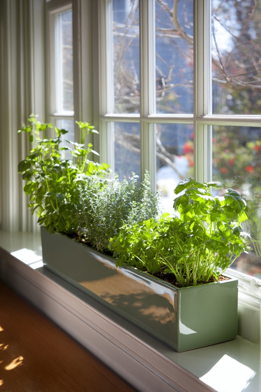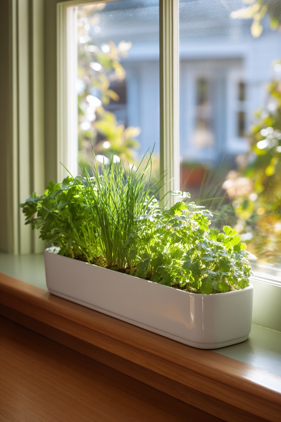 The windowsill is the traditional heart of the indoor herb garden, providing the necessary sunlight and convenience that every home chef requires. A long, narrow planter box designed specifically for a sill can accommodate a variety of sun-loving herbs like chives, cilantro, and parsley, keeping them right where the action happens. Because windowsills often experience temperature fluctuations, choosing a high-quality ceramic or wooden box can help insulate the roots and maintain a more stable growing environment. This setup allows you to take advantage of natural light without taking up valuable counter space where you prep your ingredients. The sight of vibrant green leaves framed by the morning sun provides a natural boost to your mood every time you walk into the room. It is a simple, effective, and timeless way to ensure that your favorite garnishes are never more than a few inches away from your cutting board.