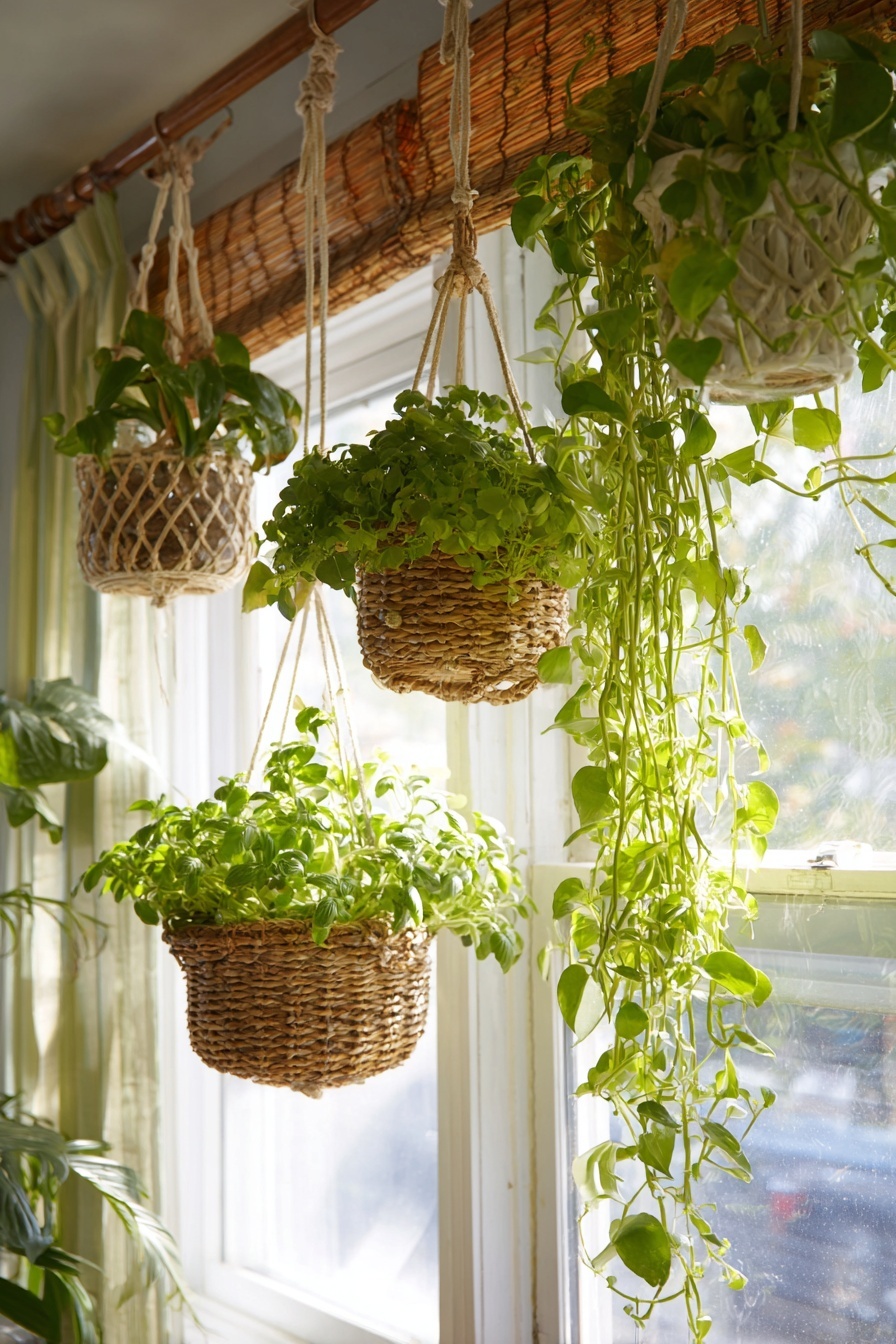 Utilizing the overhead space in your home or on a balcony is a clever way to keep your surfaces clear while adding a touch of bohemian elegance to your environment. Hanging baskets are ideal for herbs that have a spreading or cascading growth habit, as they allow the foliage to drape naturally in a beautiful, green curtain. This method is especially useful in small kitchens where counter and wall space are already occupied by appliances and cabinetry. By suspending your herbs from the ceiling or a sturdy curtain rod, you can take advantage of the bright light found in the upper portions of a window that might otherwise be wasted. It also keeps your plants out of reach of curious pets or toddlers, ensuring that your delicate seedlings remain safe and undisturbed. The gentle swaying of a hanging herb garden adds a sense of movement and tranquility to your living space.