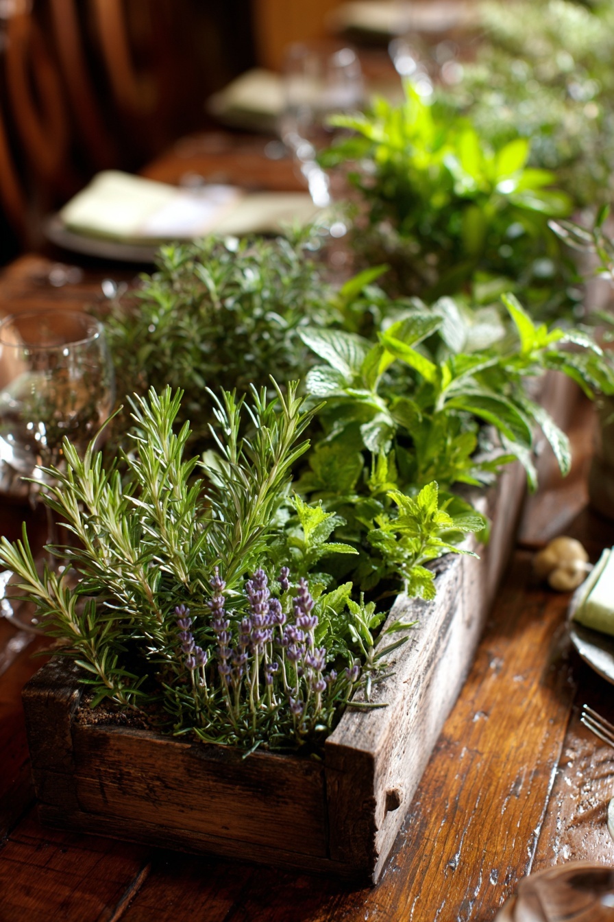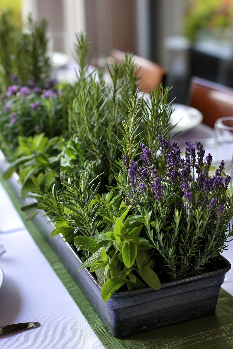 Instead of a traditional floral arrangement that will eventually fade, consider using a long, shallow trough filled with living herbs as a permanent and functional centerpiece for your dining table. This idea allows your guests to harvest their own fresh garnishes during a dinner party, adding a unique and interactive element to the dining experience. Herbs like rosemary and lavender provide a wonderful, subtle fragrance that enhances the atmosphere without being as overwhelming as some heavily scented flowers. This setup requires a location that receives a decent amount of light during the day, or you can simply move the centerpiece to a sunny spot when the table is not in use. It is a wonderful way to integrate your love for gardening into your social life, proving that fresh herbs are as much a treat for the eyes as they are for the palate.