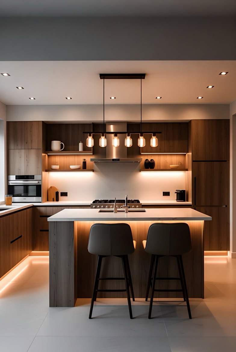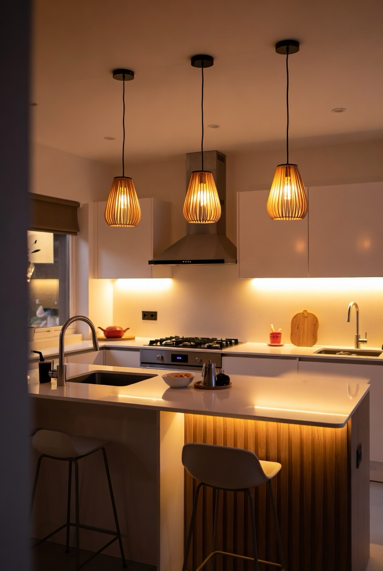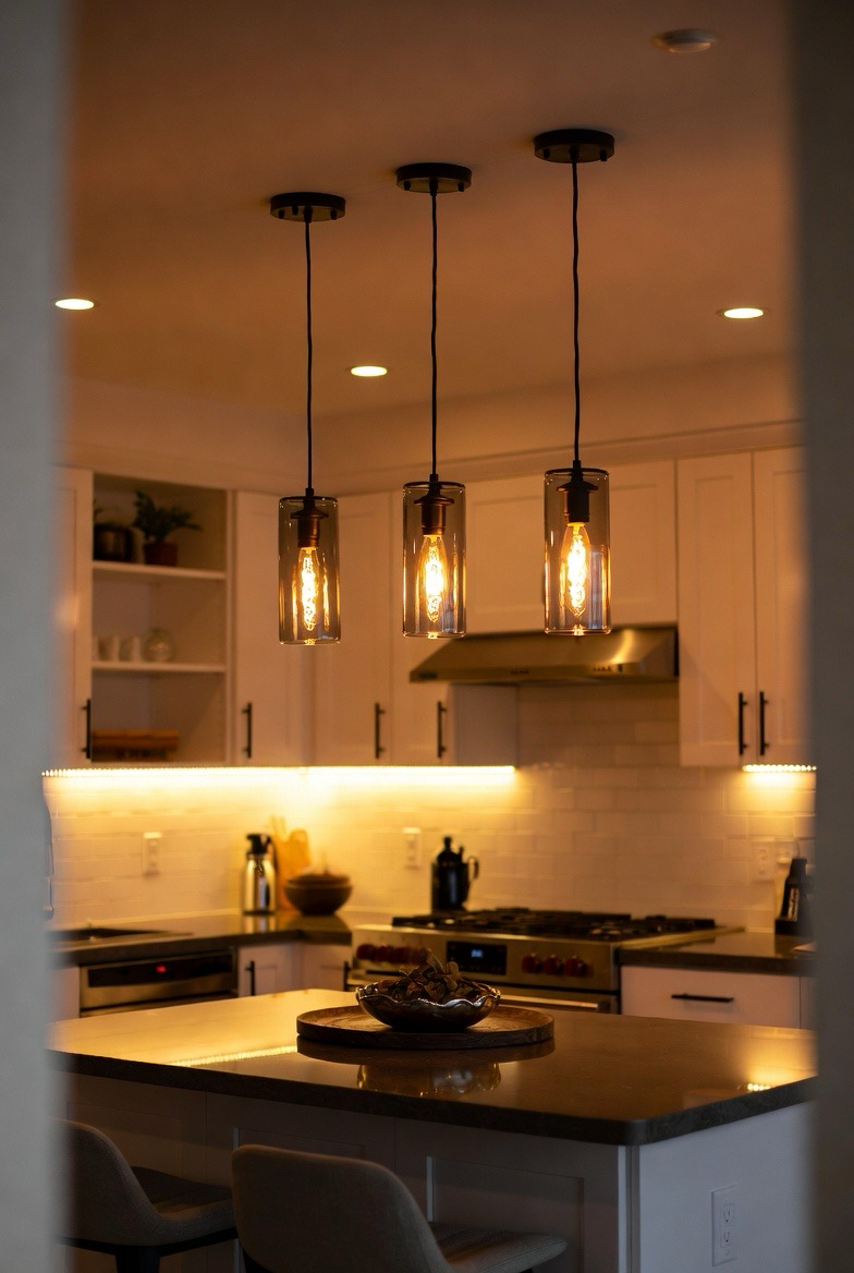 Lighting sets the mood. Soft, warm lighting makes your kitchen feel welcoming and relaxing. Pendant lights over islands, under-cabinet lighting, and warm bulbs create layers of light. This makes your kitchen feel more atmospheric and less harsh. Good lighting highlights your design details and makes the space feel cozy.