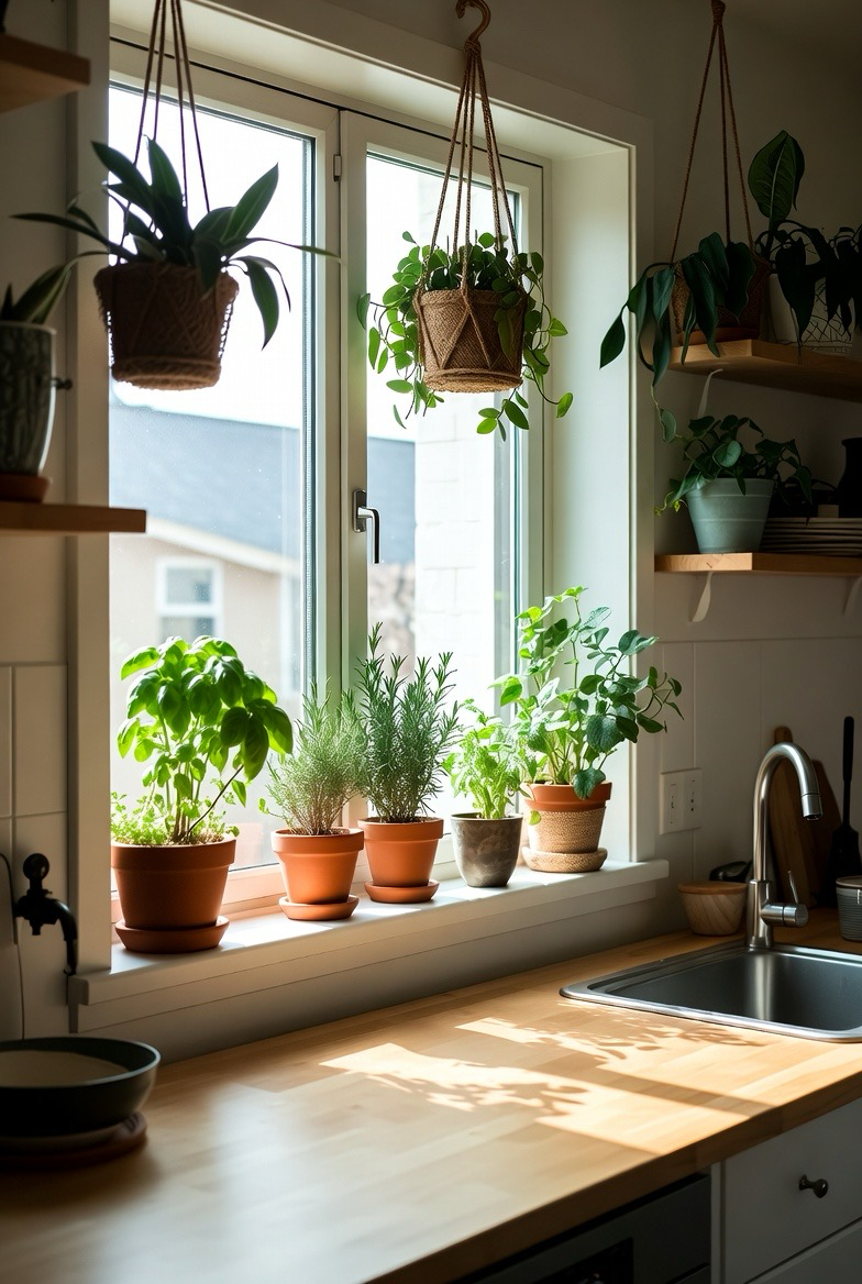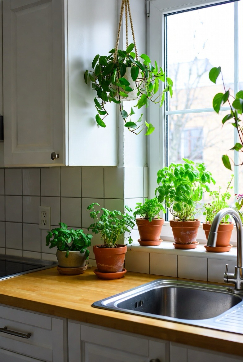 Plants bring life into your kitchen. Whether it’s herbs on the windowsill or hanging plants, greenery adds freshness and color. It makes the space feel natural and relaxed. Plants soften hard surfaces and improve the overall vibe.