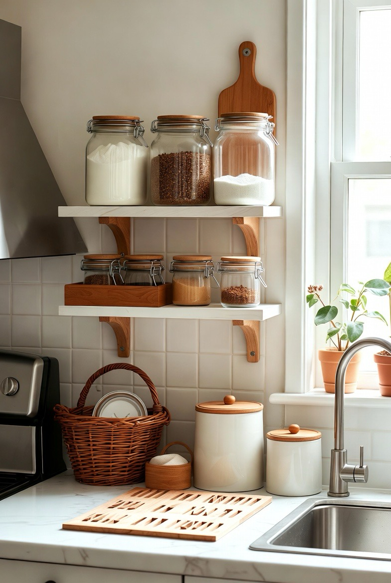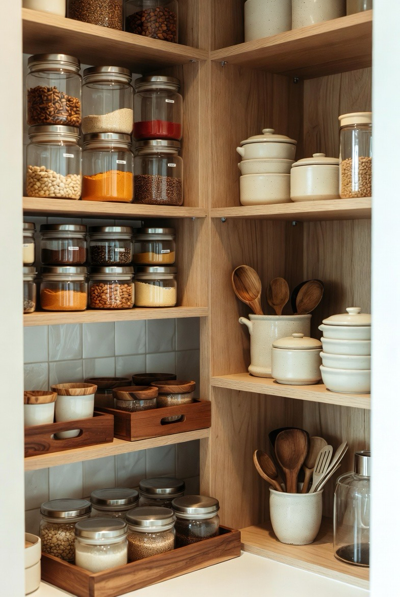 Pretty storage keeps things organized and beautiful. Glass jars, wooden trays, and ceramic containers make everyday items look stylish.