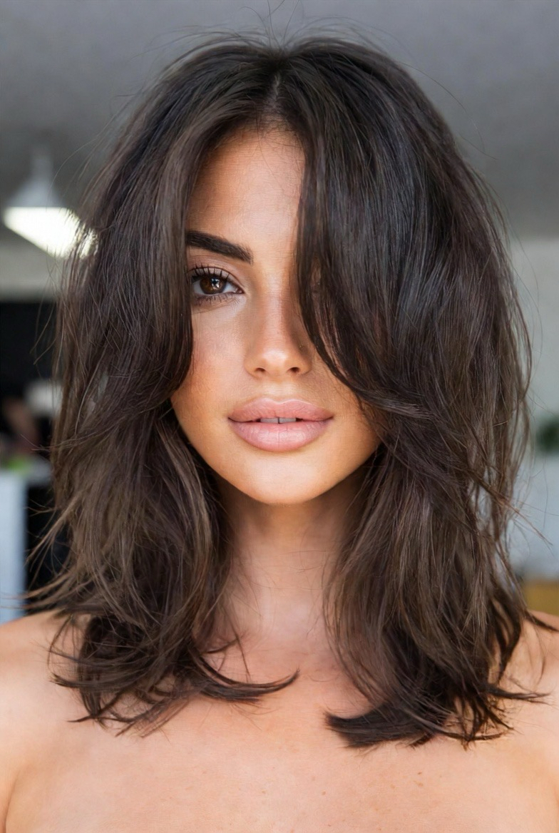 The butterfly cut has been a viral sensation, but the “lite” version is much more manageable for everyday wear. This style features short, voluminous layers on the top of the head that resemble wings, which then blend into longer face-framing pieces. In a mid-length format, this prevents the hair from looking too “mullet-like” while still providing that incredible lift and bounce. It is a fantastic way to keep your length while removing weight that might be dragging your face down. It provides an instant “facelift” effect by drawing the eye upward toward the temples.