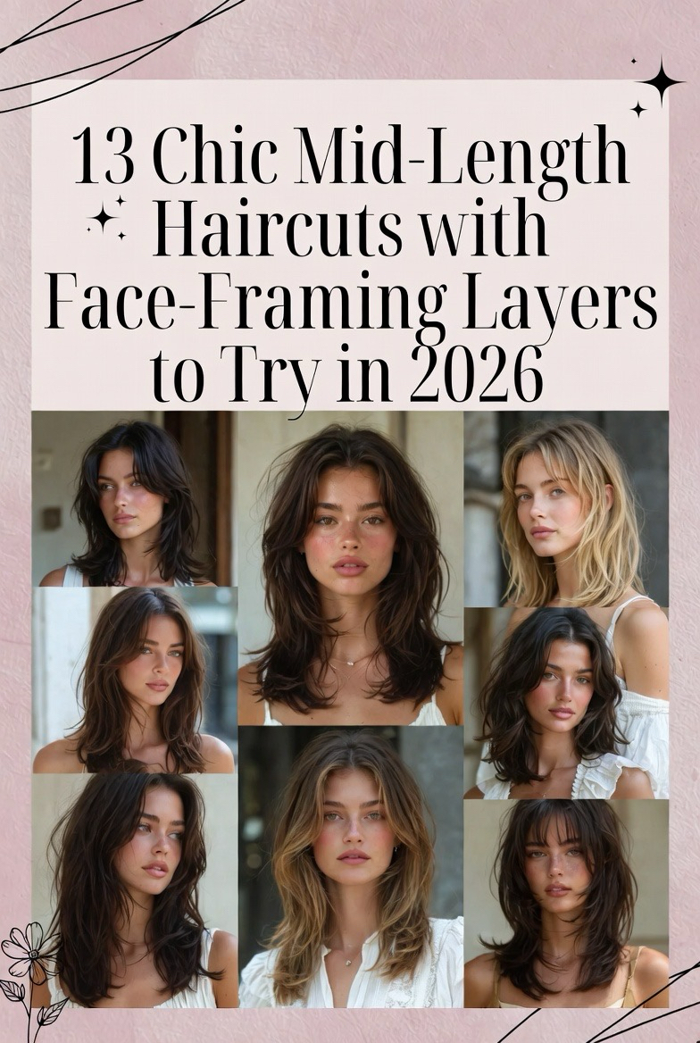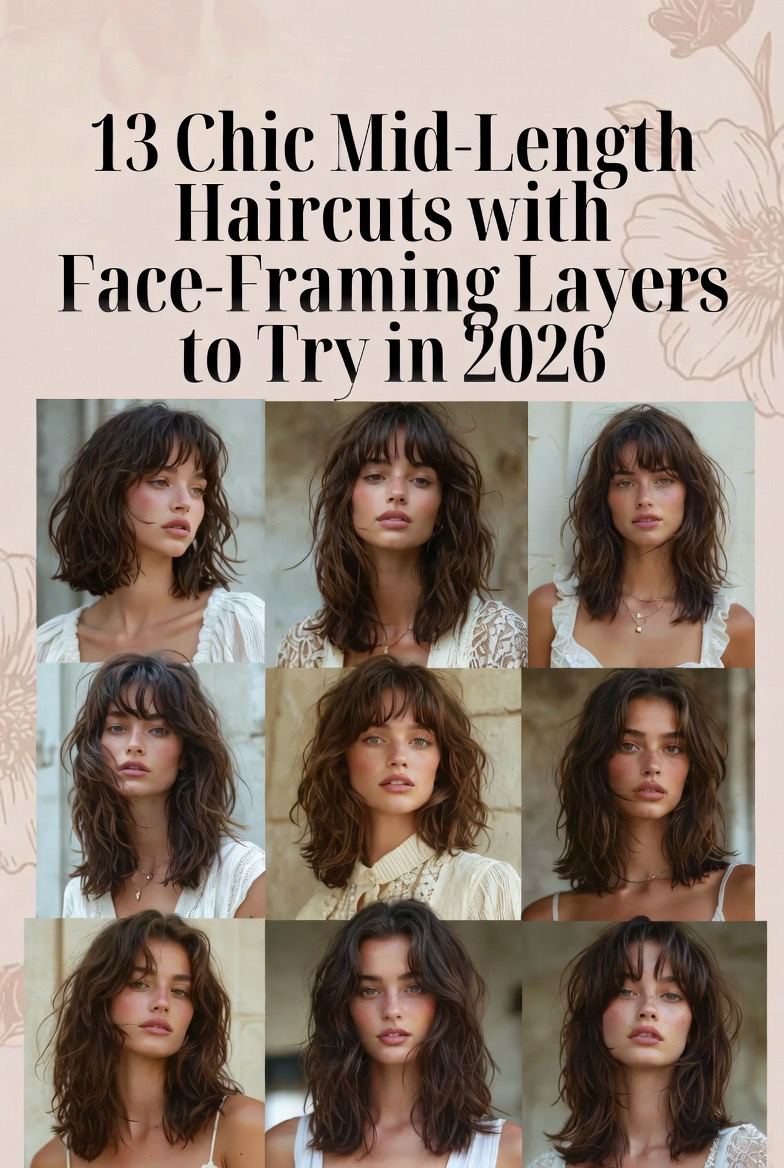 Mid-length hair is officially the “sweet spot” of the beauty world this year. It offers enough length to play with updos and braids, yet it is short enough to remain manageable and healthy-looking. However, the real magic happens when you introduce face-framing layers. These strategically cut strands act like a built-in highlighter for your bone structure, softening sharp angles and bringing attention to your eyes and cheekbones. Whether you are looking for a dramatic change or a subtle refresh, these thirteen styles are designed to provide movement, volume, and a high-fashion finish that looks incredible on your Pinterest board and even better in real life.