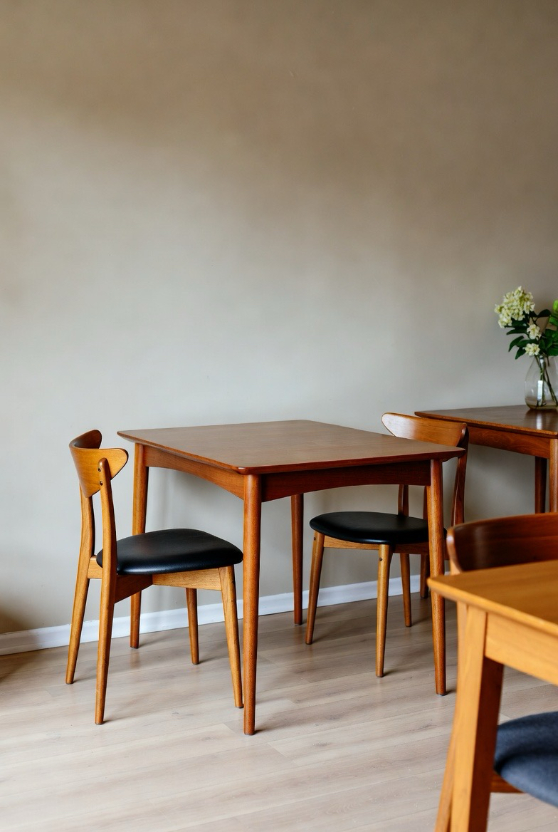 Compact dining tables are perfect for apartments and smaller homes. Designed with slim profiles and efficient proportions, they offer style without crowding the room. Despite their size, these tables retain classic mid-century elements like tapered legs and warm wood tones. When paired with lightweight chairs, they create a functional and visually pleasing dining area. This design proves that great style doesn’t require a large footprint.