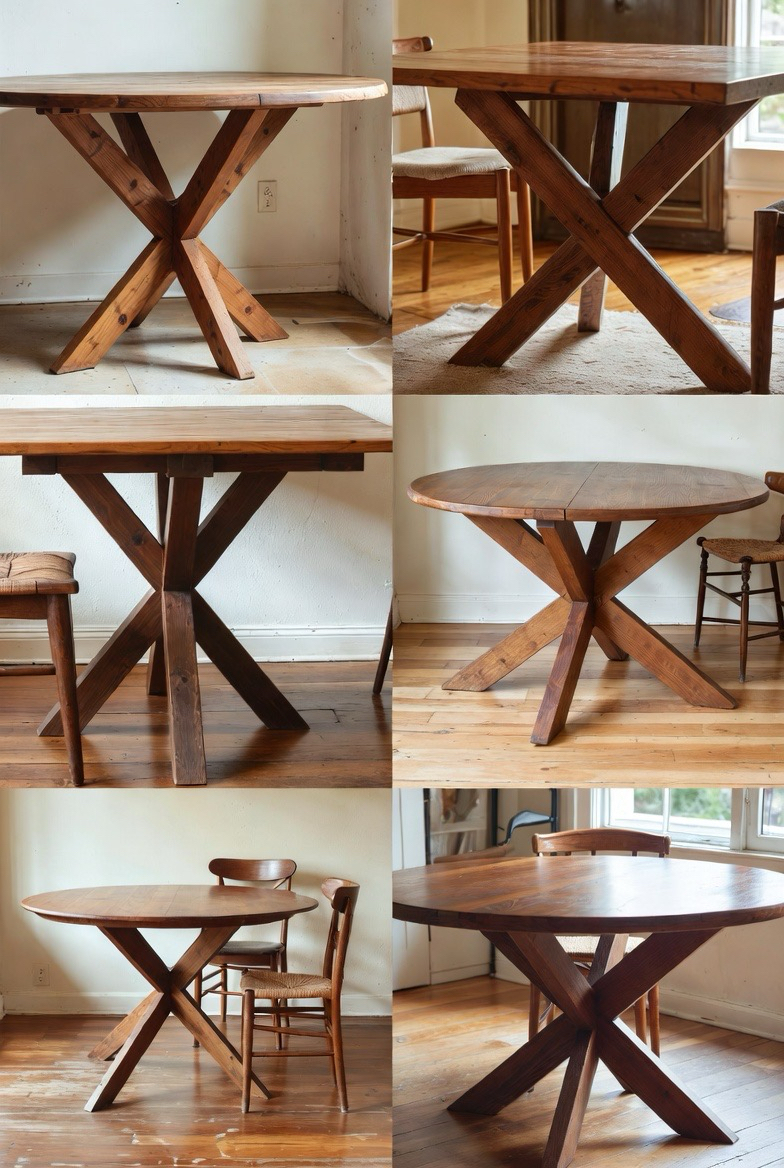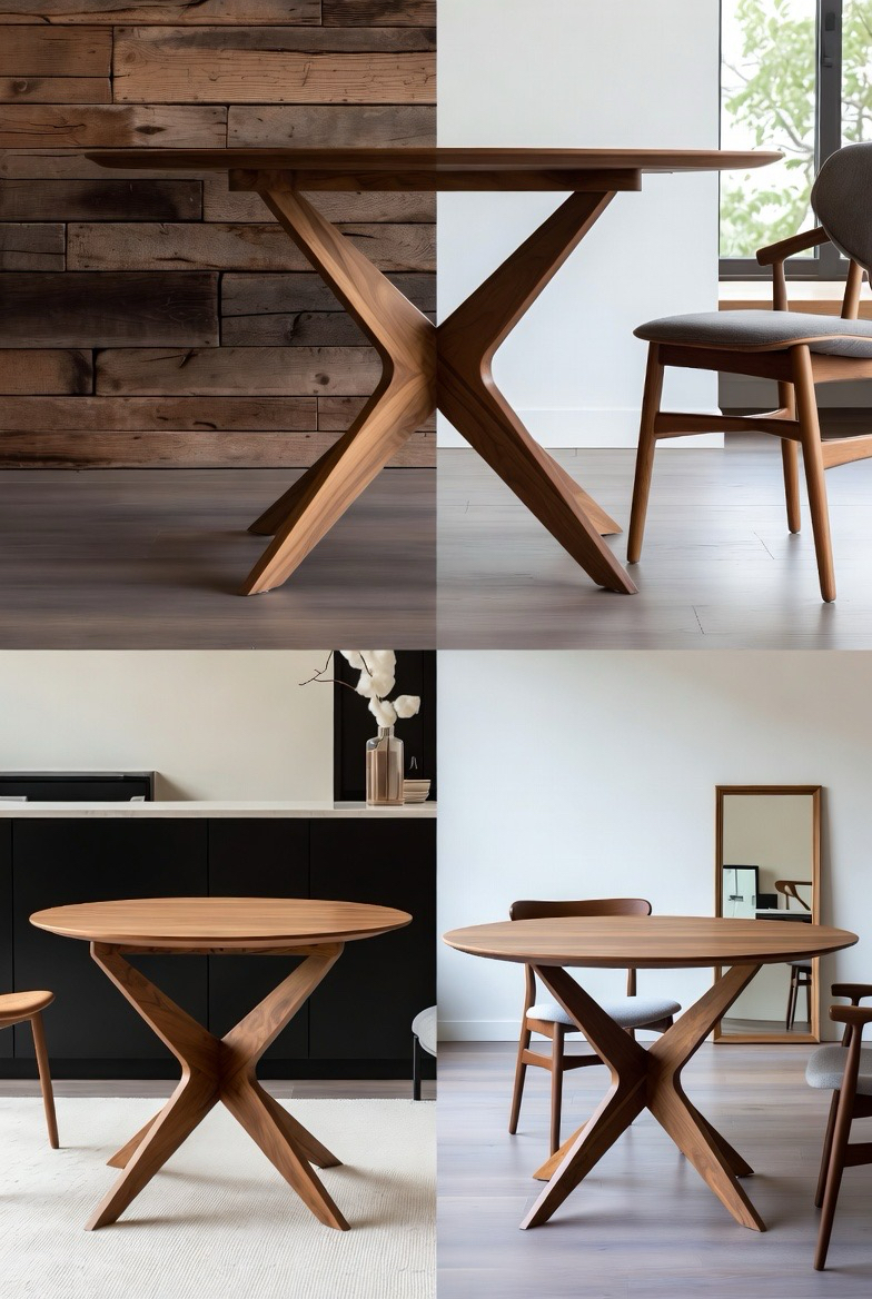 Cross-leg bases bring architectural interest to mid-century dining tables. The intersecting supports create visual movement while maintaining balance and stability. This design works well in both rustic and modern settings, offering versatility and charm. Often paired with rectangular or oval tops, it provides generous legroom and a strong visual anchor. It’s a bold yet timeless option for statement dining rooms.