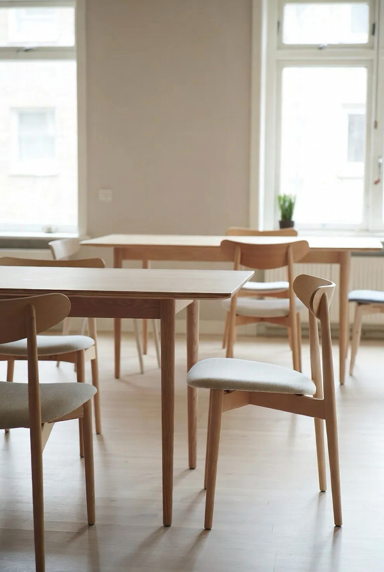Scandinavian mid-century dining tables emphasize simplicity, functionality, and lightness. Pale woods, slim legs, and clean lines define this timeless style. The result is a table that feels calm, inviting, and effortlessly elegant. Perfect for bright, airy interiors, it pairs beautifully with neutral palettes and natural textures. This design remains a favorite for its ability to elevate a space without ever feeling overpowering.
