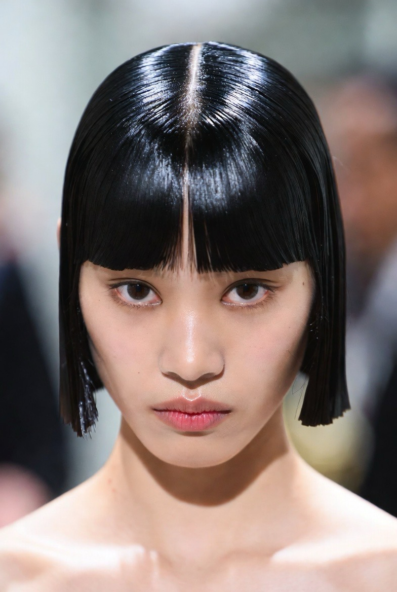Glass hair is all about extreme shine and smoothness. A sharp center part enhances symmetry, while ultra-flat styling creates a reflective, mirror-like finish. This look works beautifully on medium to long hair and instantly elevates any outfit with its sleek, high-fashion appeal.