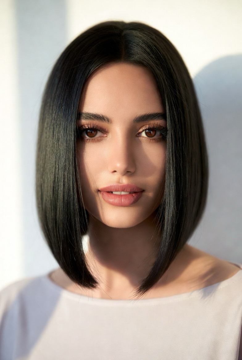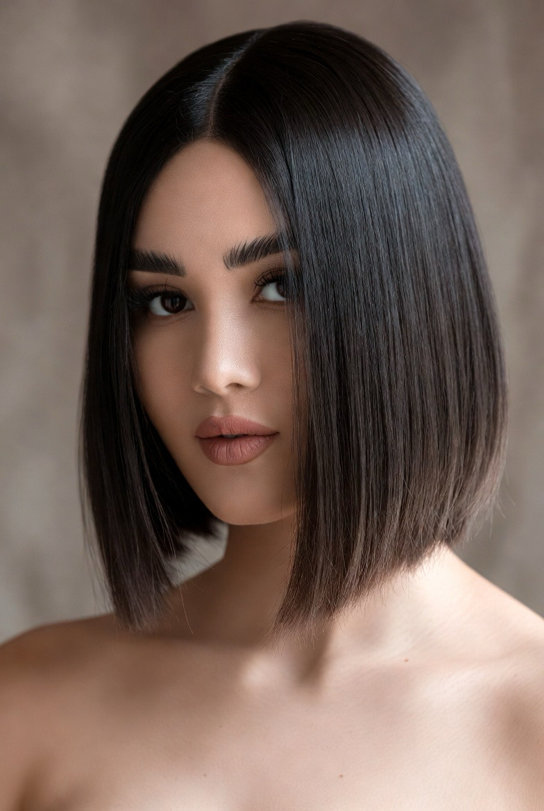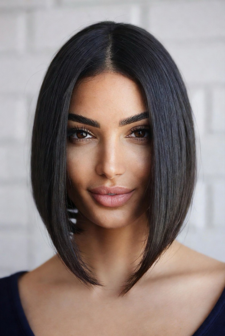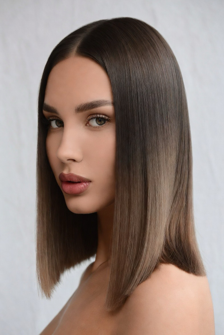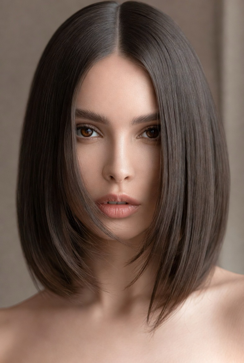 A straight lob offers versatility and modern charm. Sitting just at or below the shoulders, this cut frames the face beautifully while remaining easy to style. Its clean shape and glossy finish make it ideal for everyday elegance.