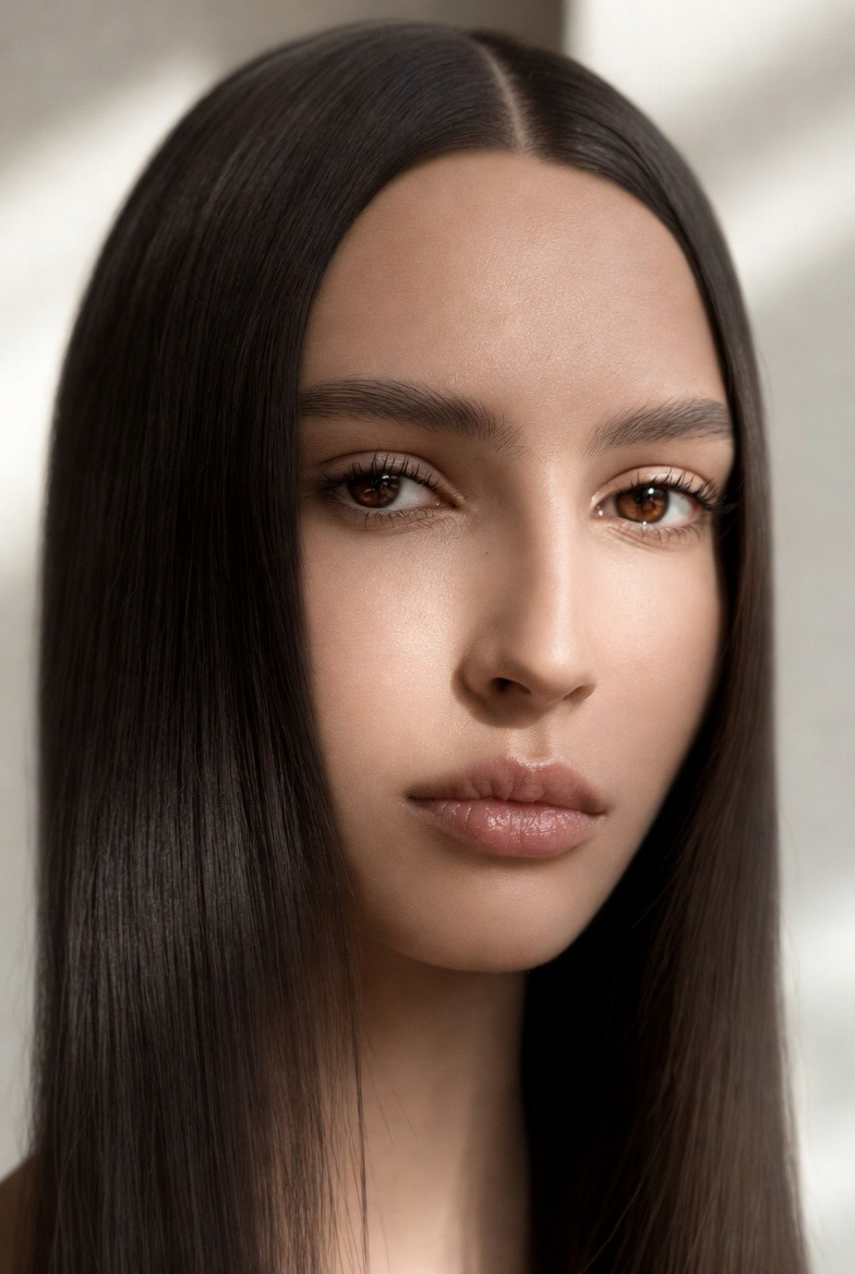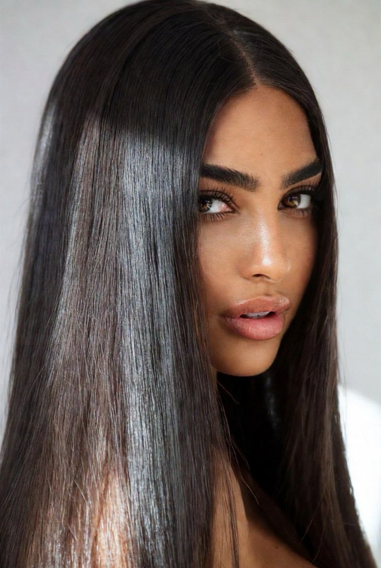 A minimalist approach highlights simplicity and shine. With a clean middle part and smooth finish, this trend feels timeless, refined, and effortlessly chic, perfect for both casual and formal settings.