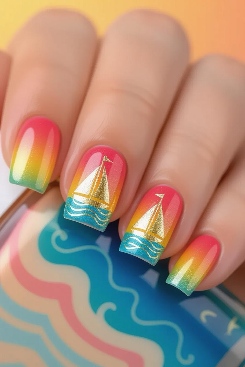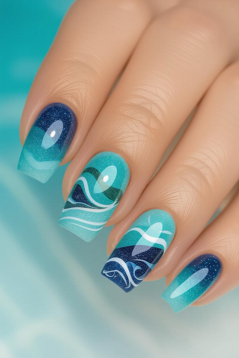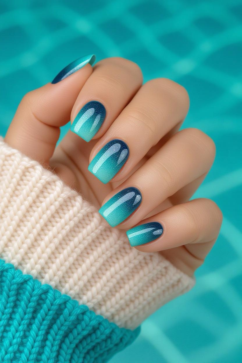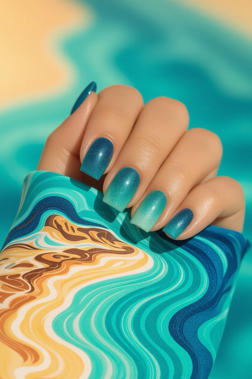 Blend shades of turquoise, aqua, and deep navy to mimic the breathtaking colors of the Aegean Sea. This ombre look is dreamy, smooth, and effortlessly chic.