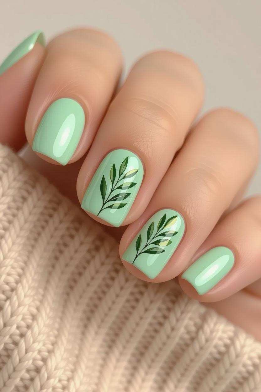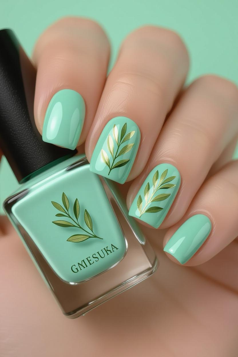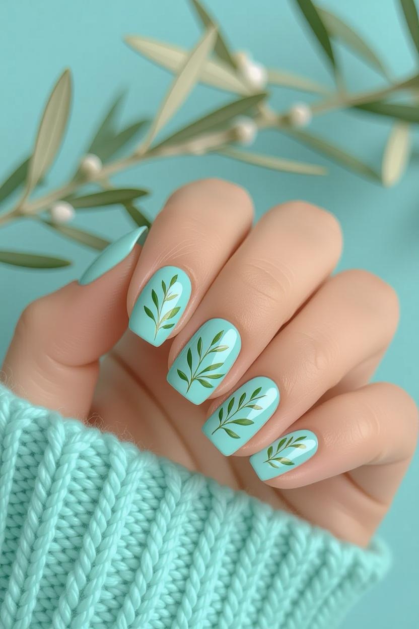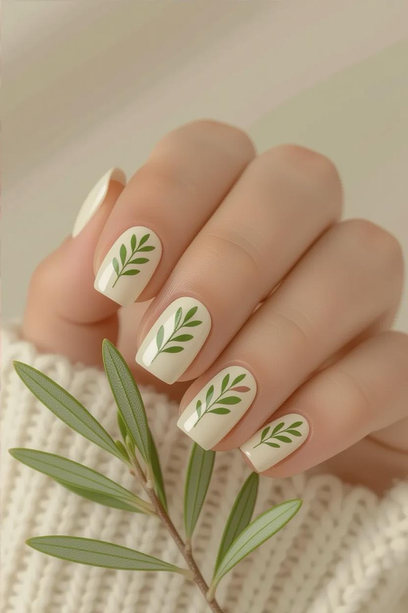 Tiny olive branch accents on a soft pastel base bring a subtle nod to Greece’s national tree. This design is perfect for those who love understated yet meaningful nail art.