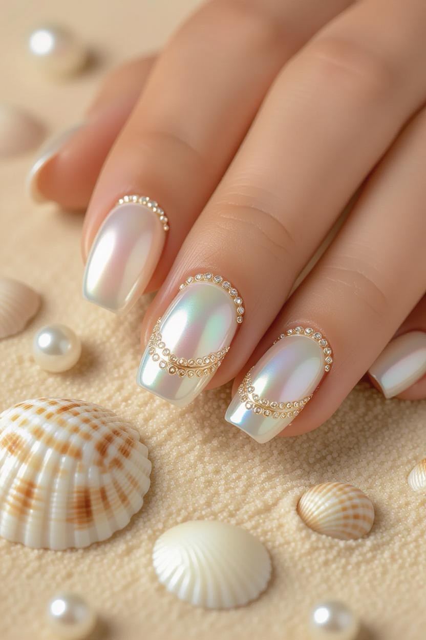 Channel the coastal beauty of Greece with pearl embellishments and shell patterns. Pair them with a sandy beige base for a beach-ready look.