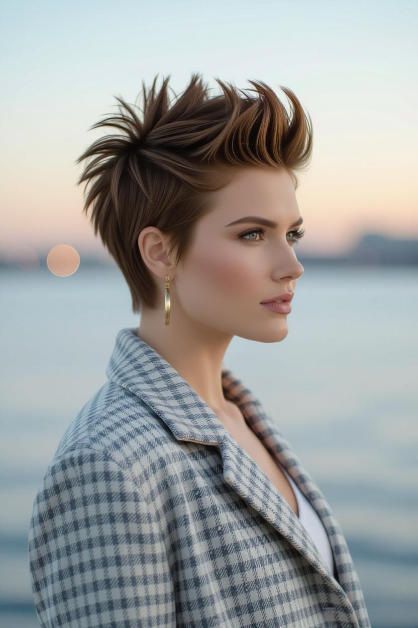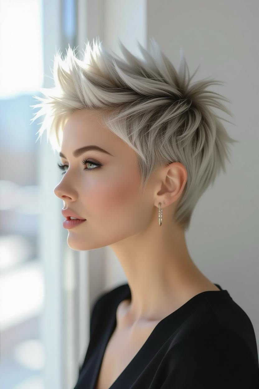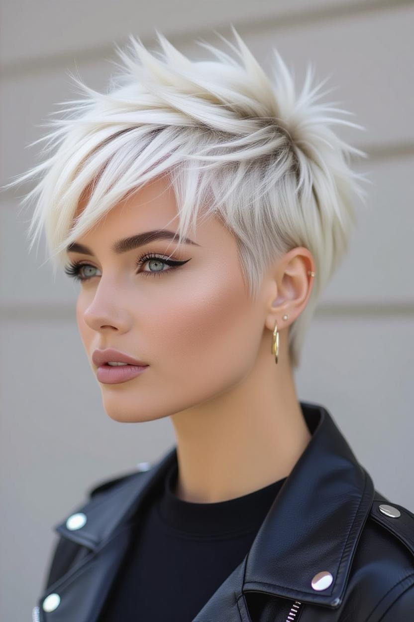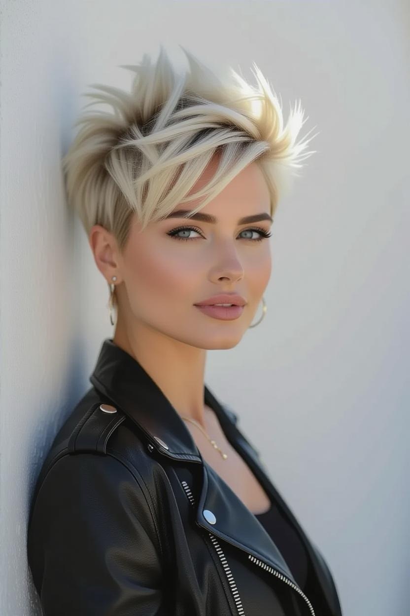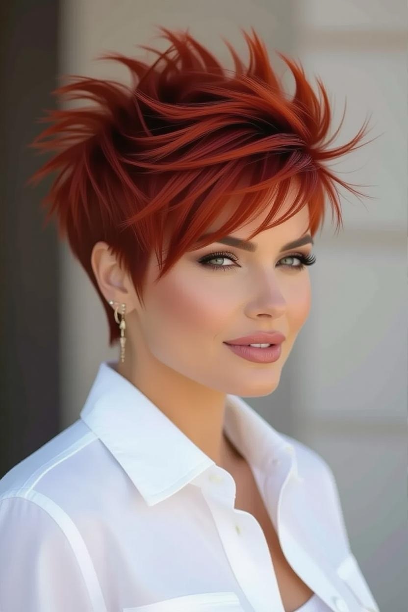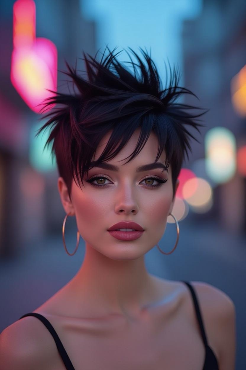 The classic pixie cut becomes instantly edgier when paired with spiky layers. By using a lightweight styling gel or wax, you can create a piecey texture that lifts the hair for a youthful, chic vibe. This look is easy to manage, making it perfect for women who want style without fuss.