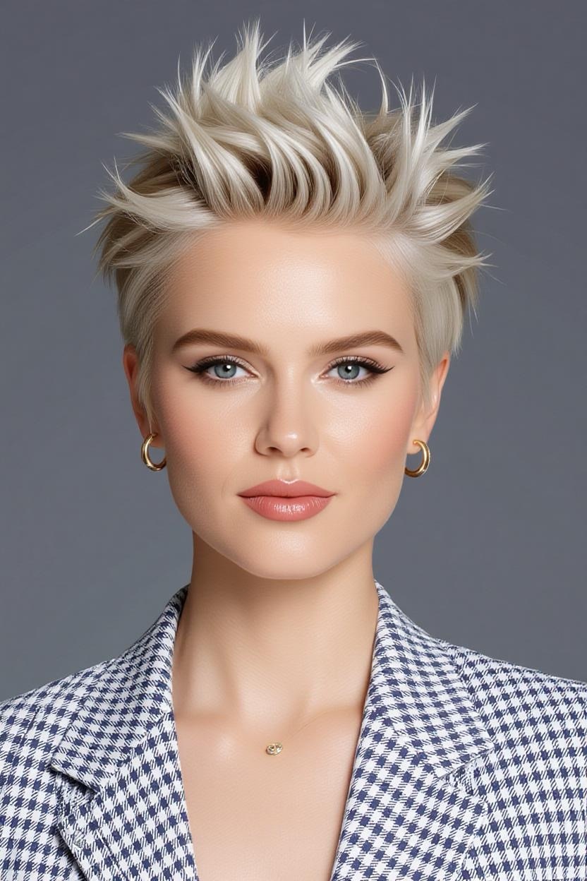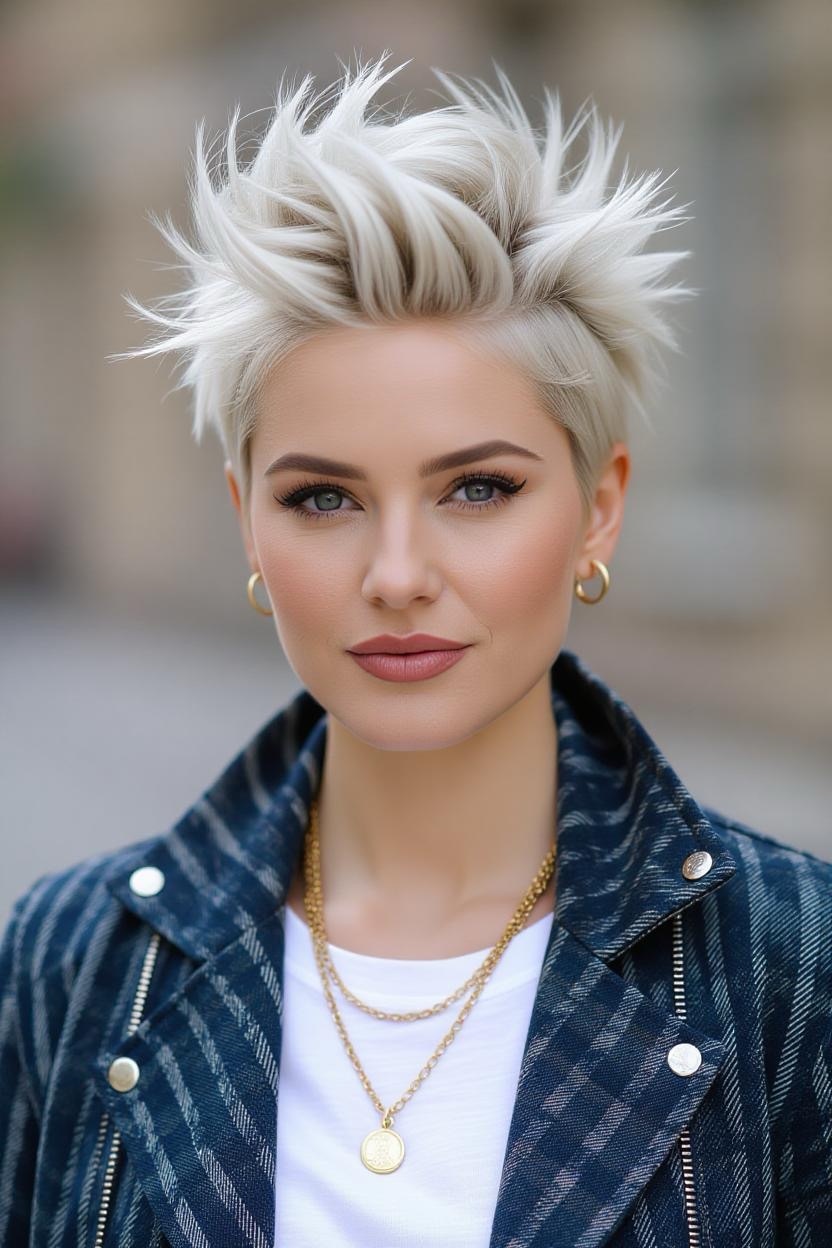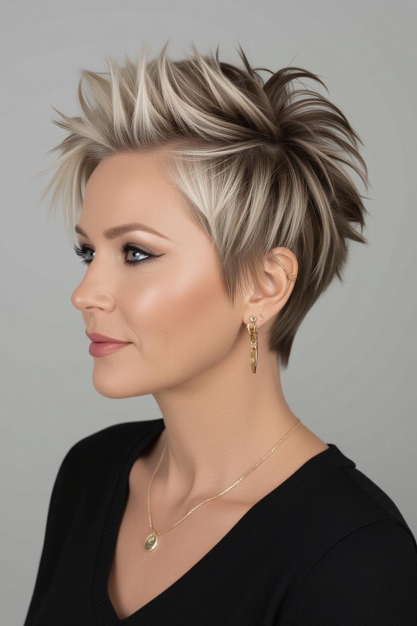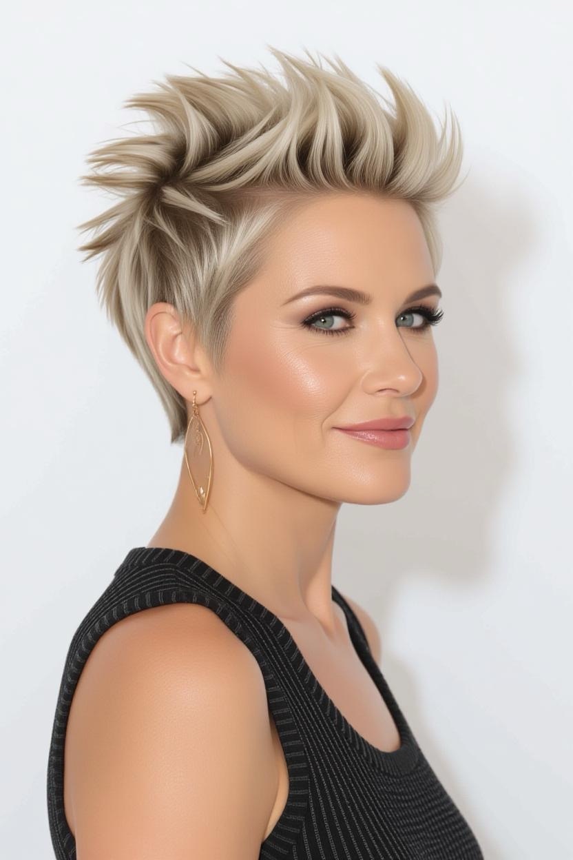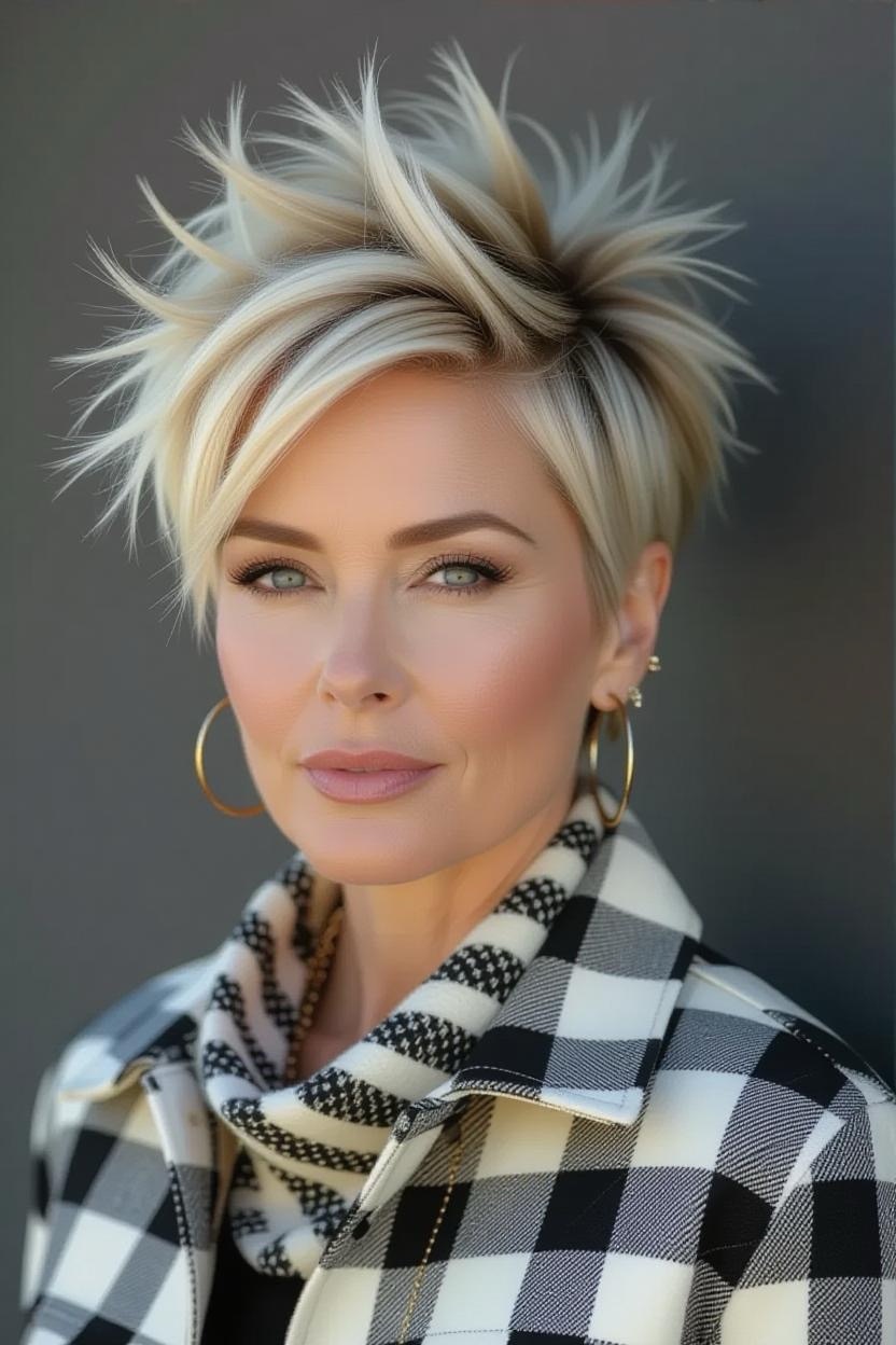 The classic pixie cut becomes instantly edgier when paired with spiky layers. By using a lightweight styling gel or wax, you can create a piecey texture that lifts the hair for a youthful, chic vibe. This look is easy to manage, making it perfect for women who want style without fuss.
