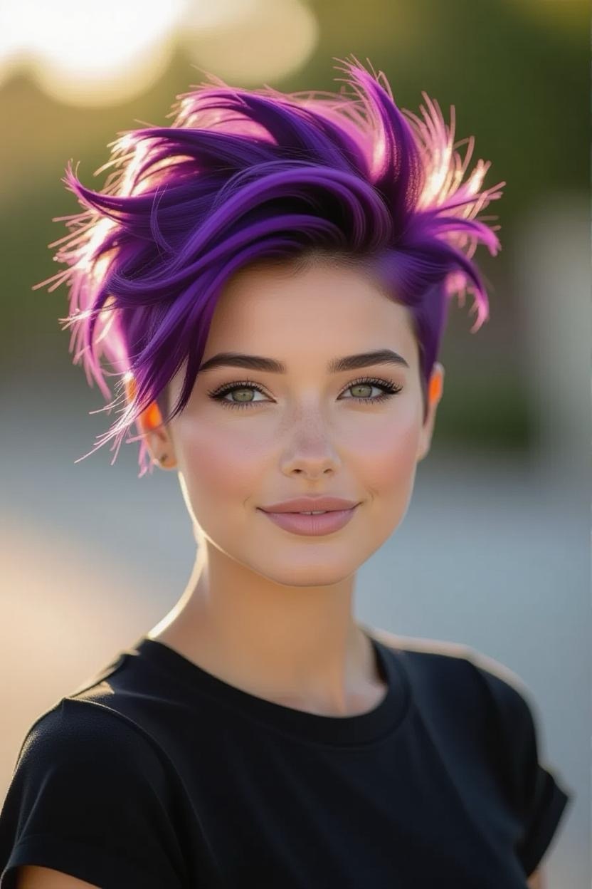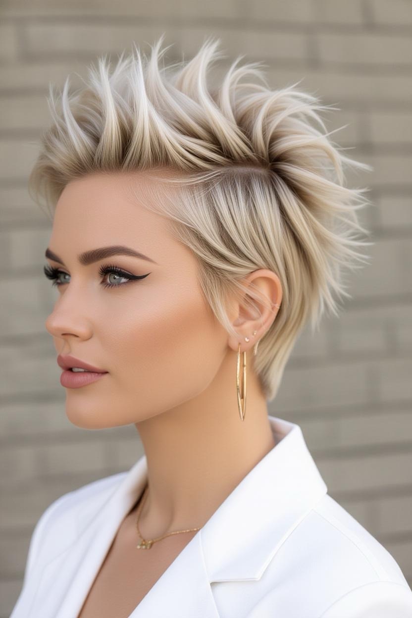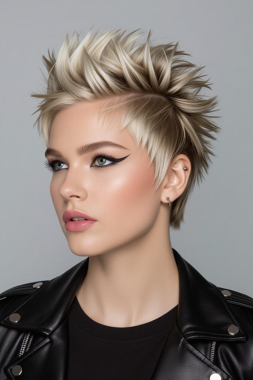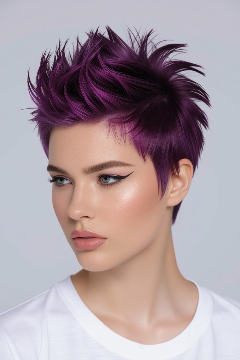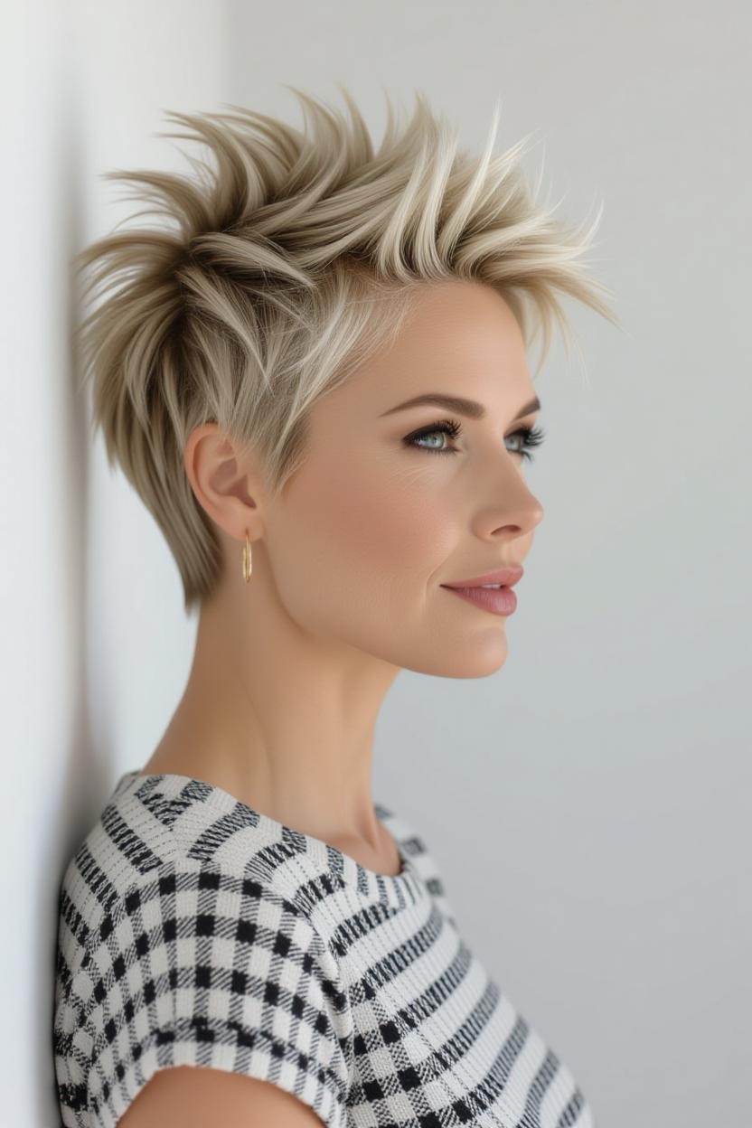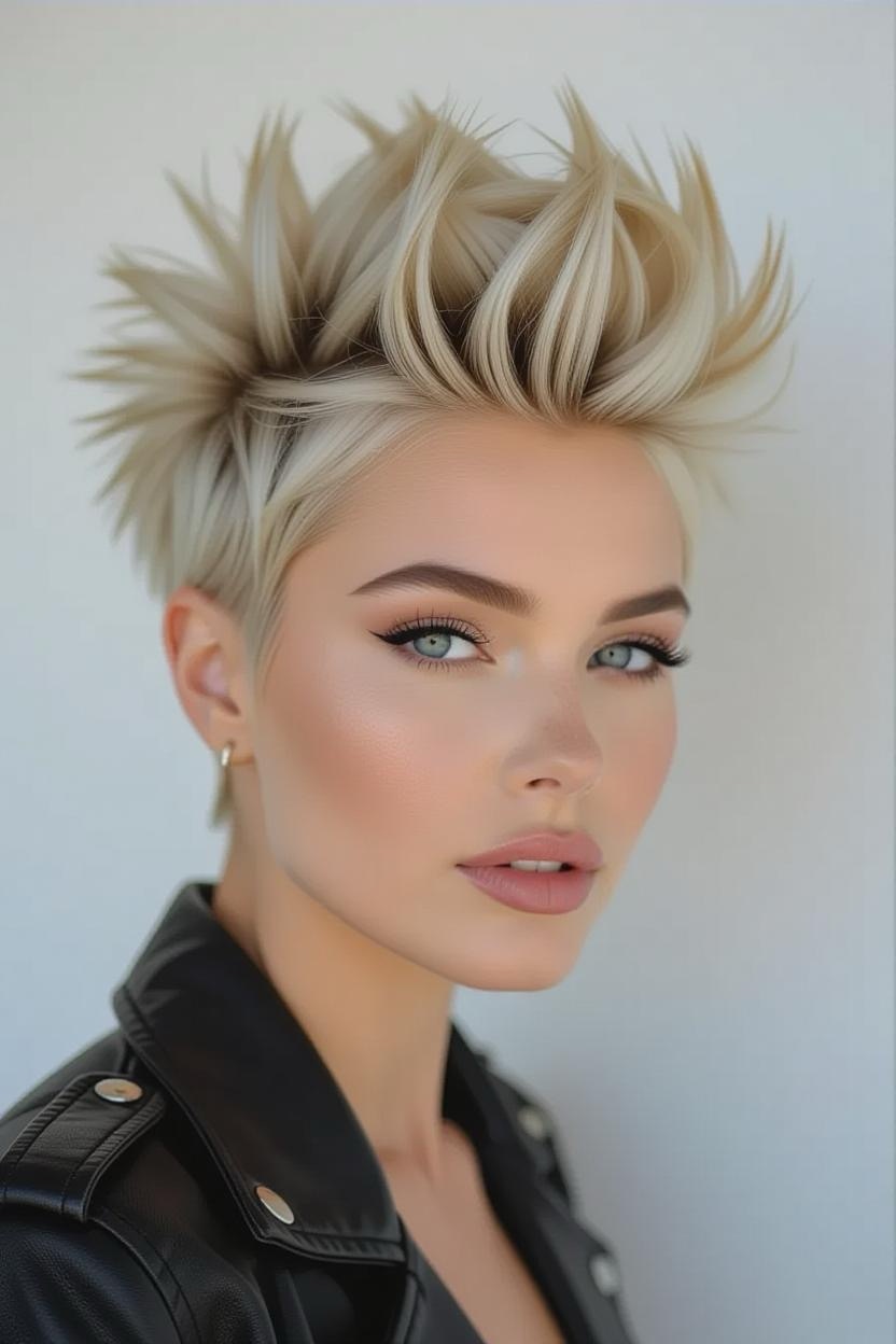 The classic pixie cut becomes instantly edgier when paired with spiky layers. By using a lightweight styling gel or wax, you can create a piecey texture that lifts the hair for a youthful, chic vibe. This look is easy to manage, making it perfect for women who want style without fuss.