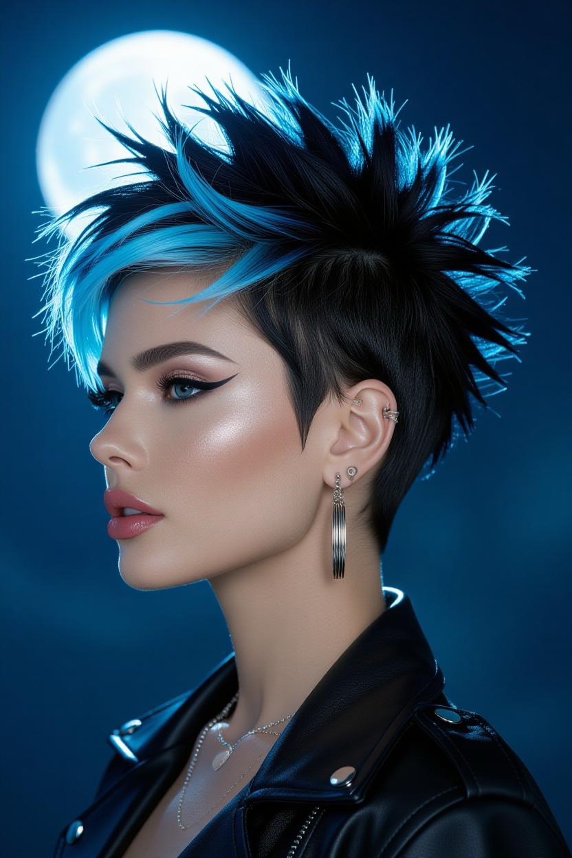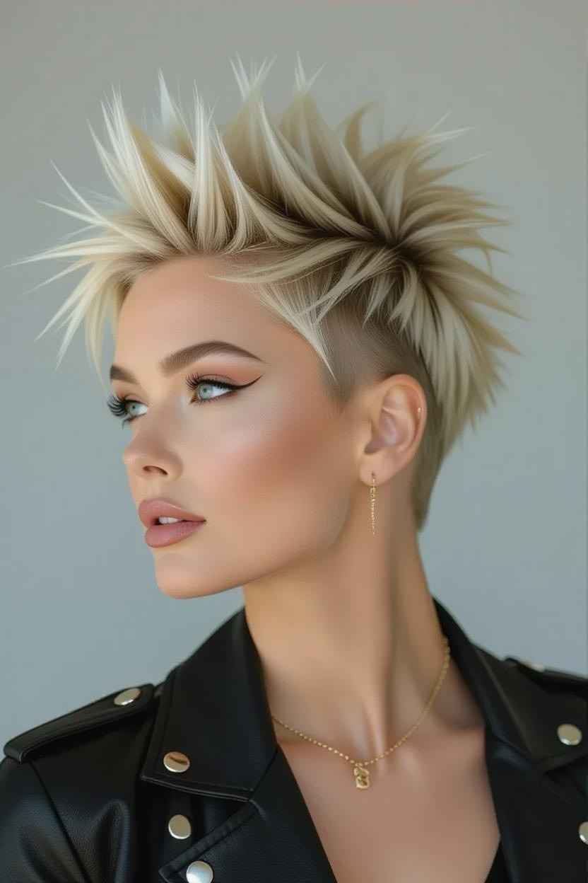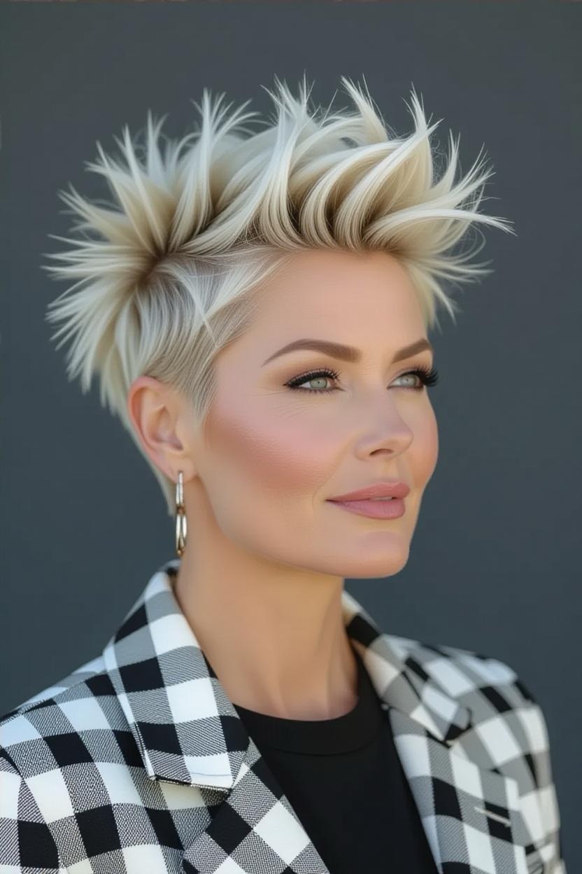 By sweeping spikes toward one side, you can create an asymmetrical and modern effect. This hairstyle works especially well for women who want a flattering, face-framing twist on the classic spiky look.