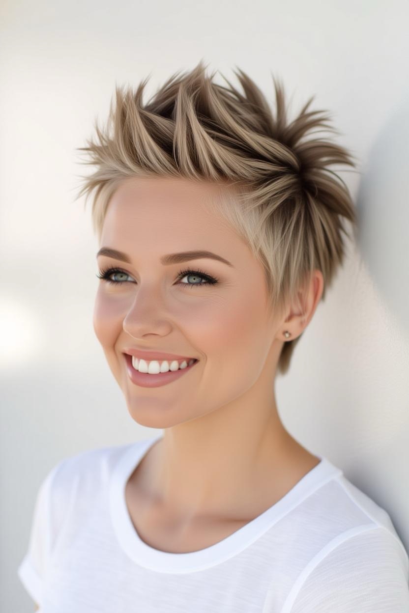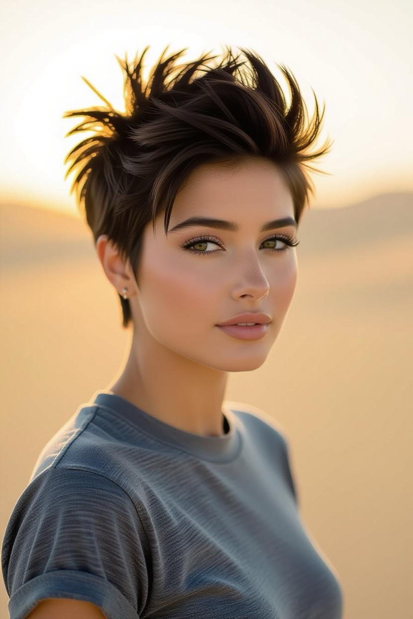 Messy spikes bring a carefree and playful energy to a short cut. This hairstyle thrives on texture, giving you an effortlessly cool appearance that works for casual days and nights out alike.