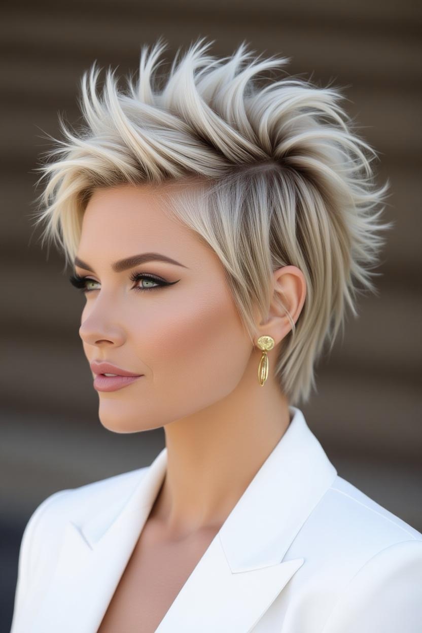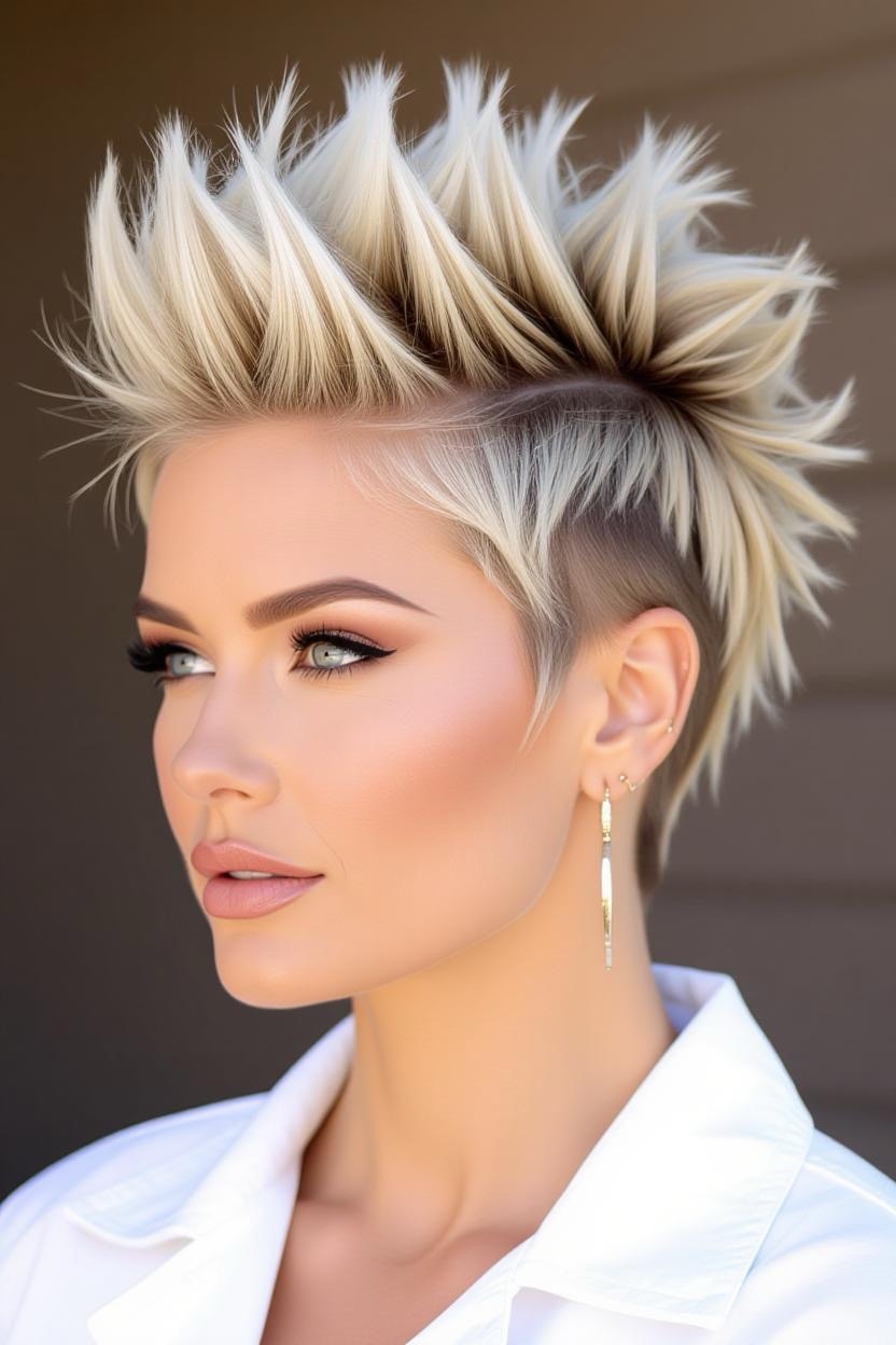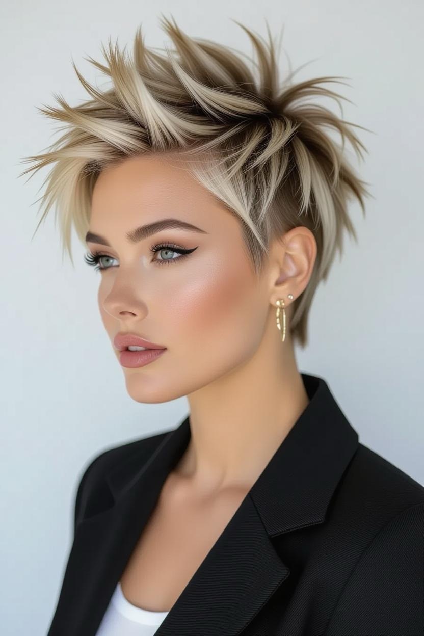 For women who love bold transformations, a spiky undercut blends drama with sophistication. With the sides trimmed short and the top styled into spiky layers, this cut highlights confidence while keeping the overall shape flattering.