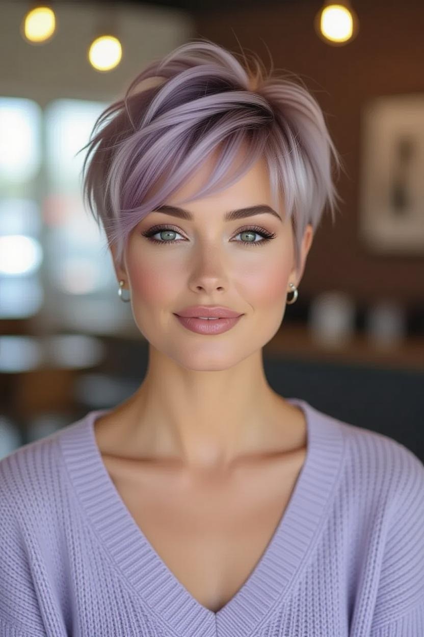 Add some flair to your pixie with spiky bangs styled forward or upward. It’s a fun way to frame the face while keeping the look sharp, bold, and fashionable.