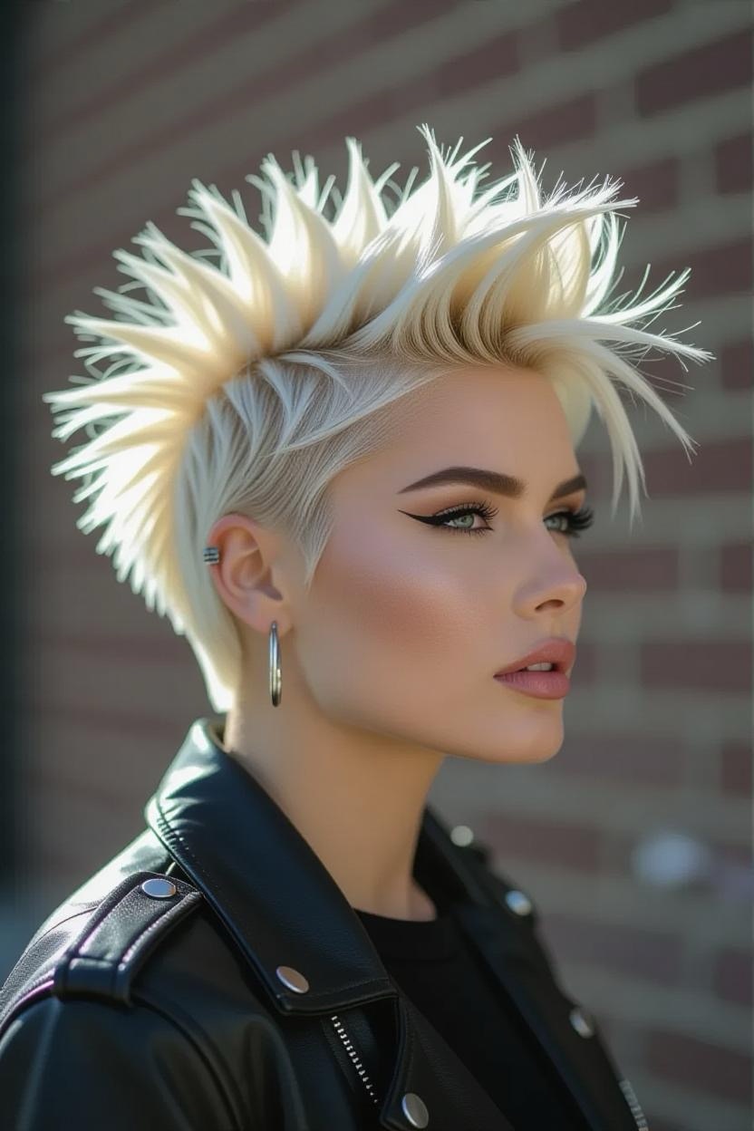 This hairstyle takes spikes to the next level with a true mohawk design. Shaved sides and a spiky strip of hair in the middle give this look unapologetic attitude, making it a true standout cut.