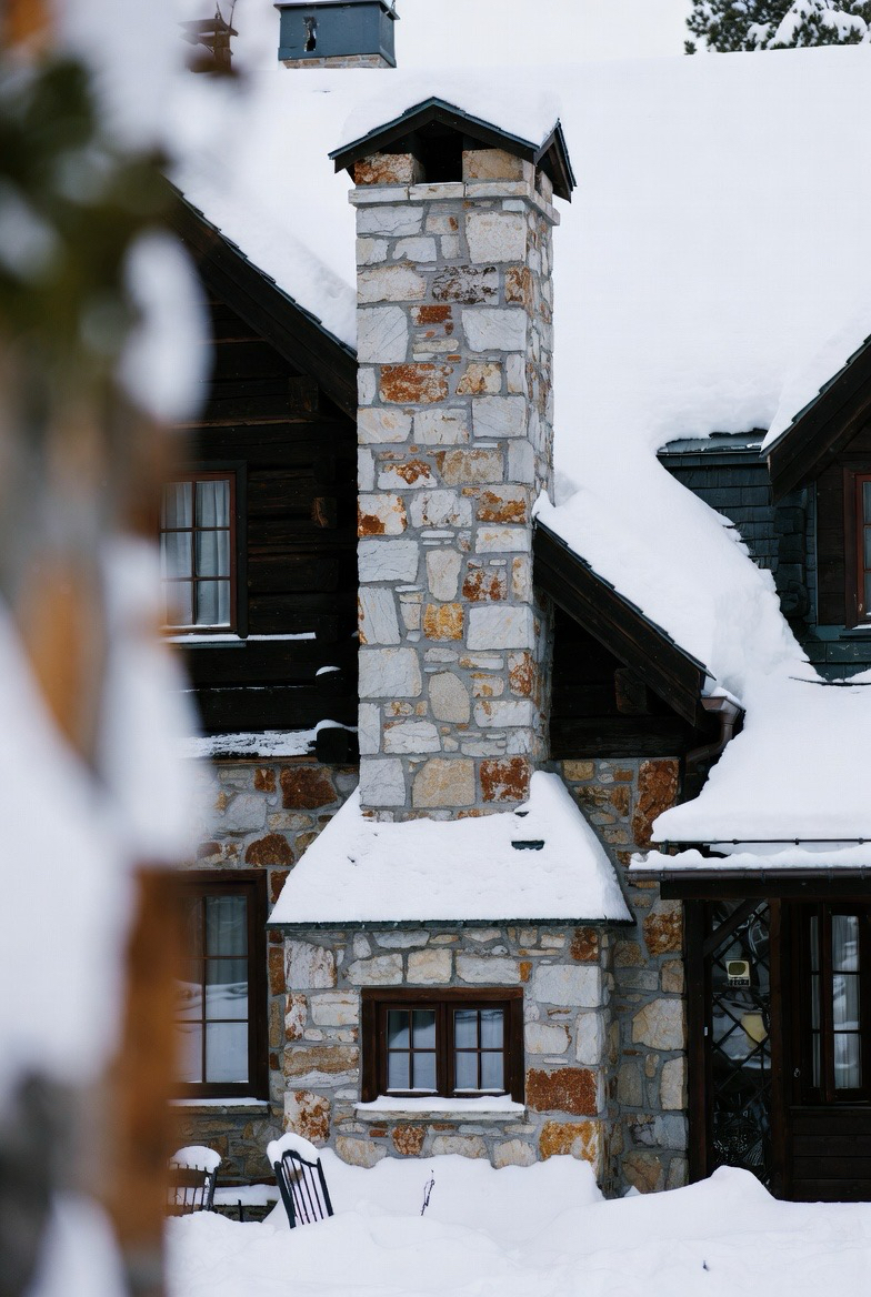 A prominent chimney adds instant warmth and character to a winter cabin exterior. Stone or brick chimneys create a visual promise of warmth inside, making the home feel more inviting from the outside. In snowy settings, chimneys become a cozy focal point, especially when paired with subtle lighting. Even when the fire isn’t visible, the presence of a chimney enhances the cabin’s winter appeal.