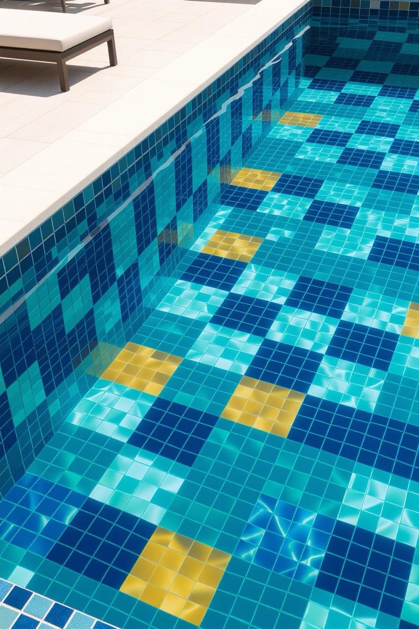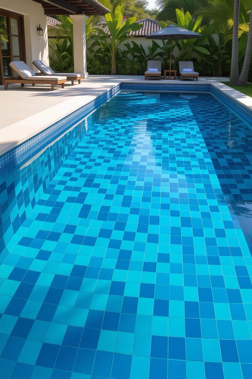 Gradient tiling that shifts from light shades at the shallow end to darker tones in the deep end adds visual depth and dynamic style.