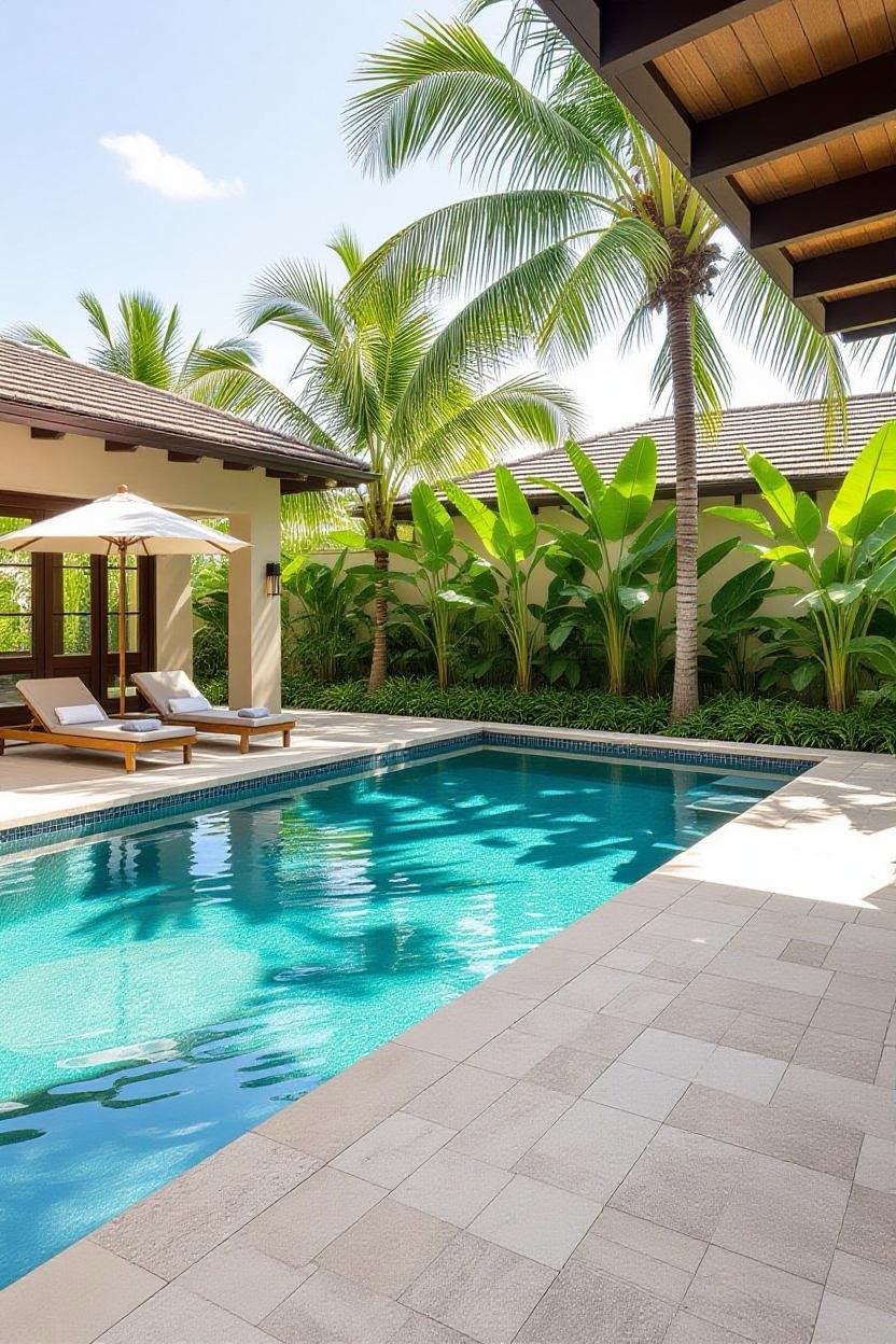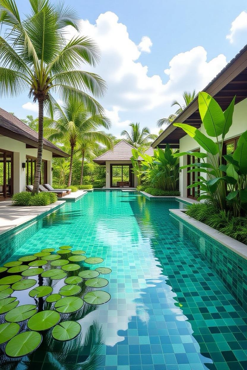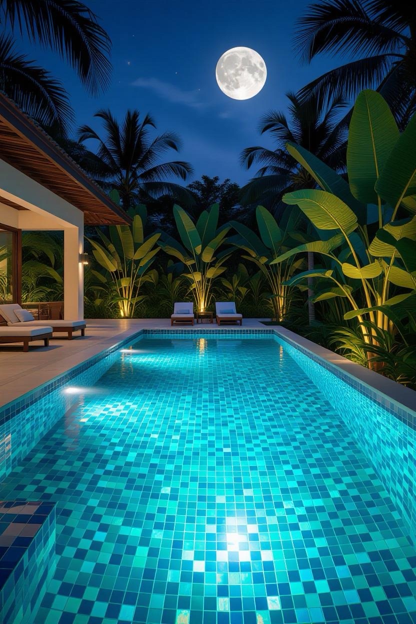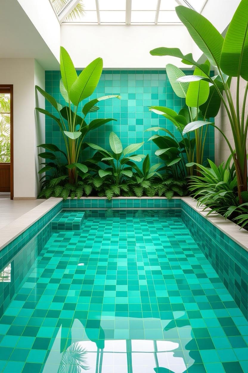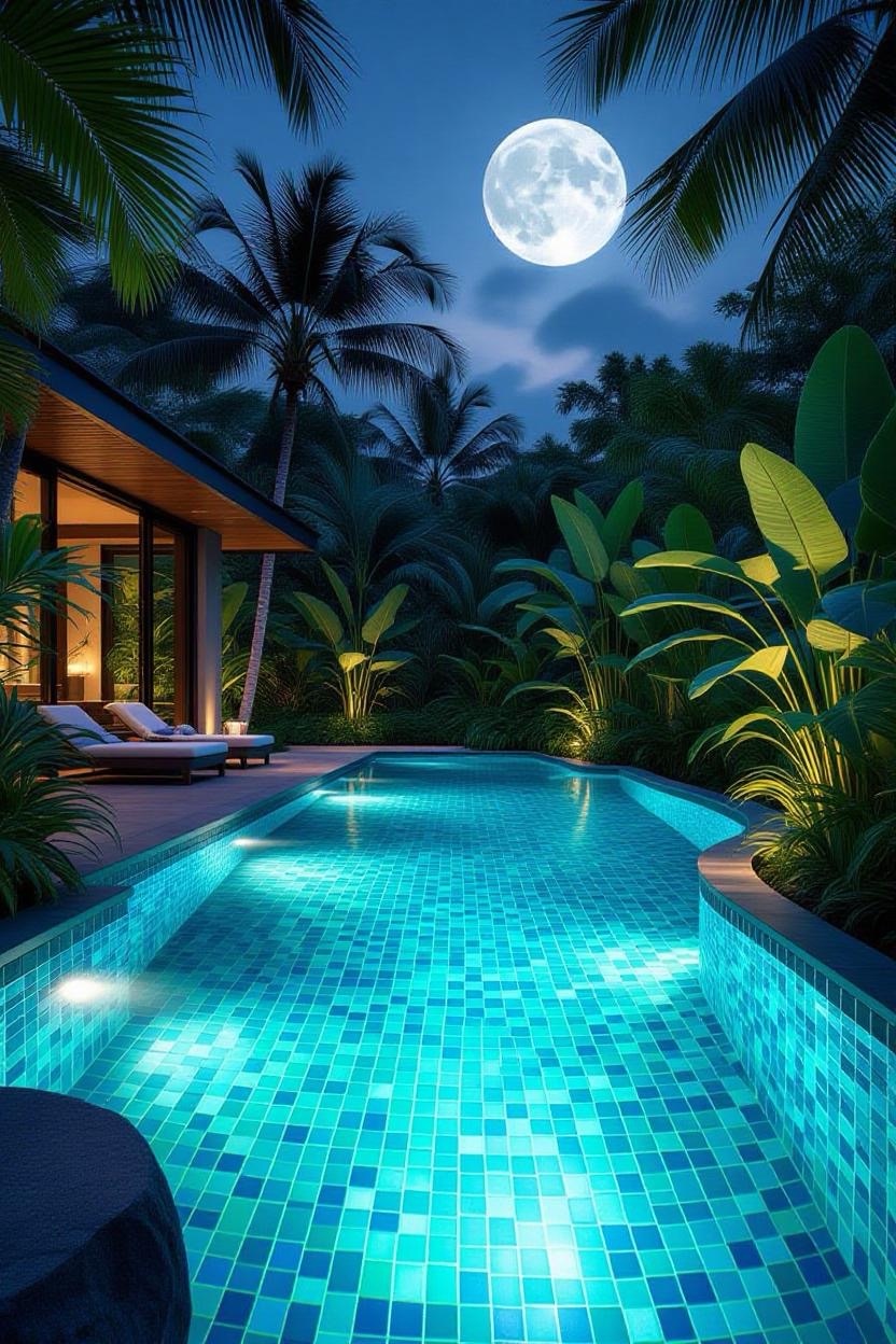 Turquoise tiles instantly evoke a coastal atmosphere, making your backyard feel like a Caribbean getaway. Pair them with palm trees and cabanas for the ultimate tropical retreat.