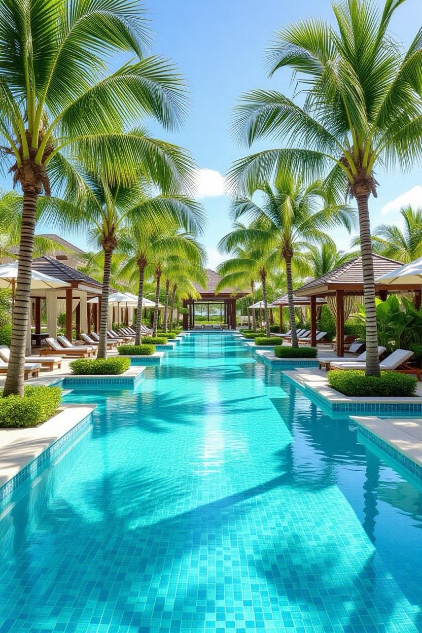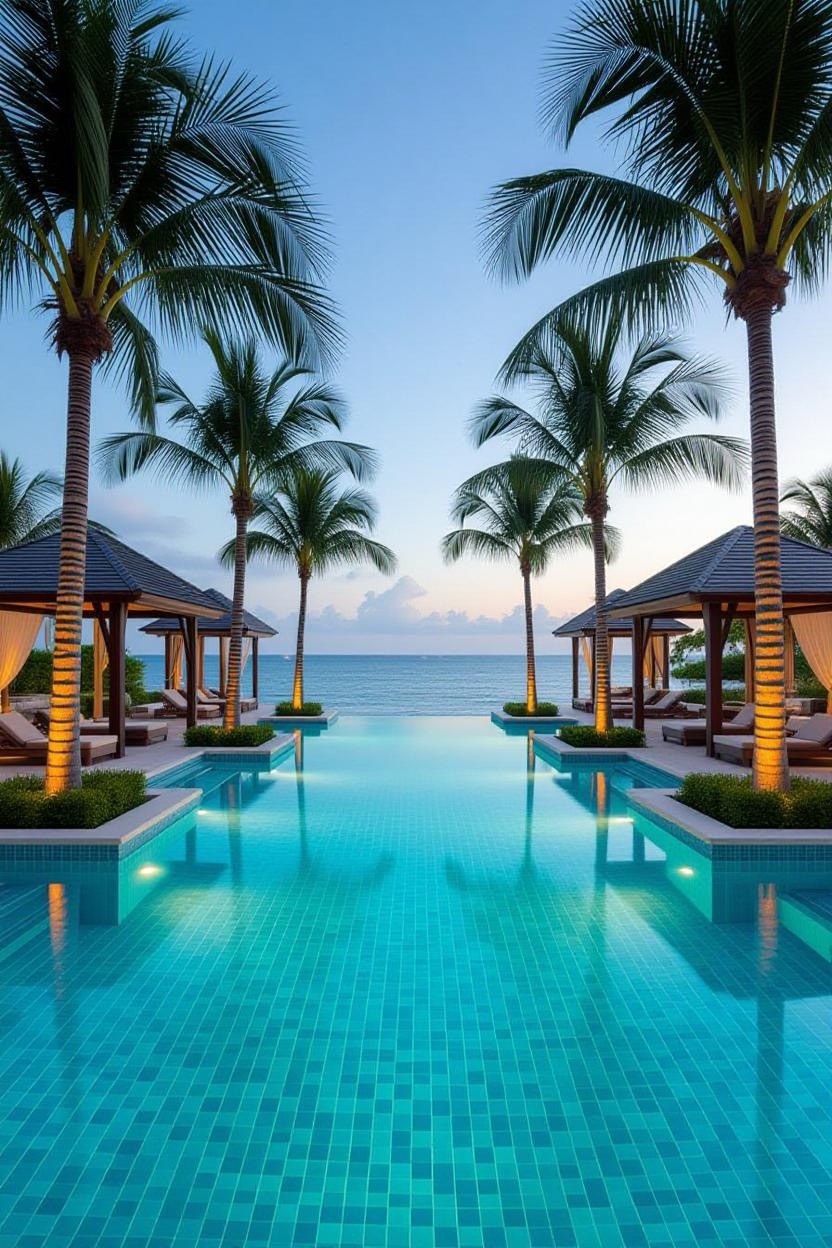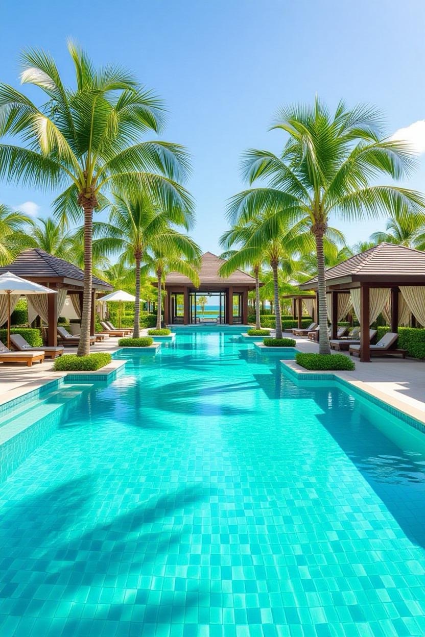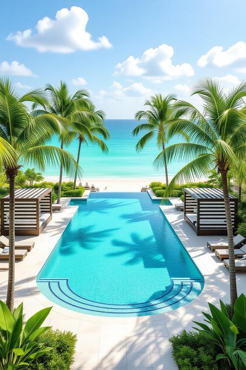 Turquoise tiles instantly evoke a coastal atmosphere, making your backyard feel like a Caribbean getaway. Pair them with palm trees and cabanas for the ultimate tropical retreat.