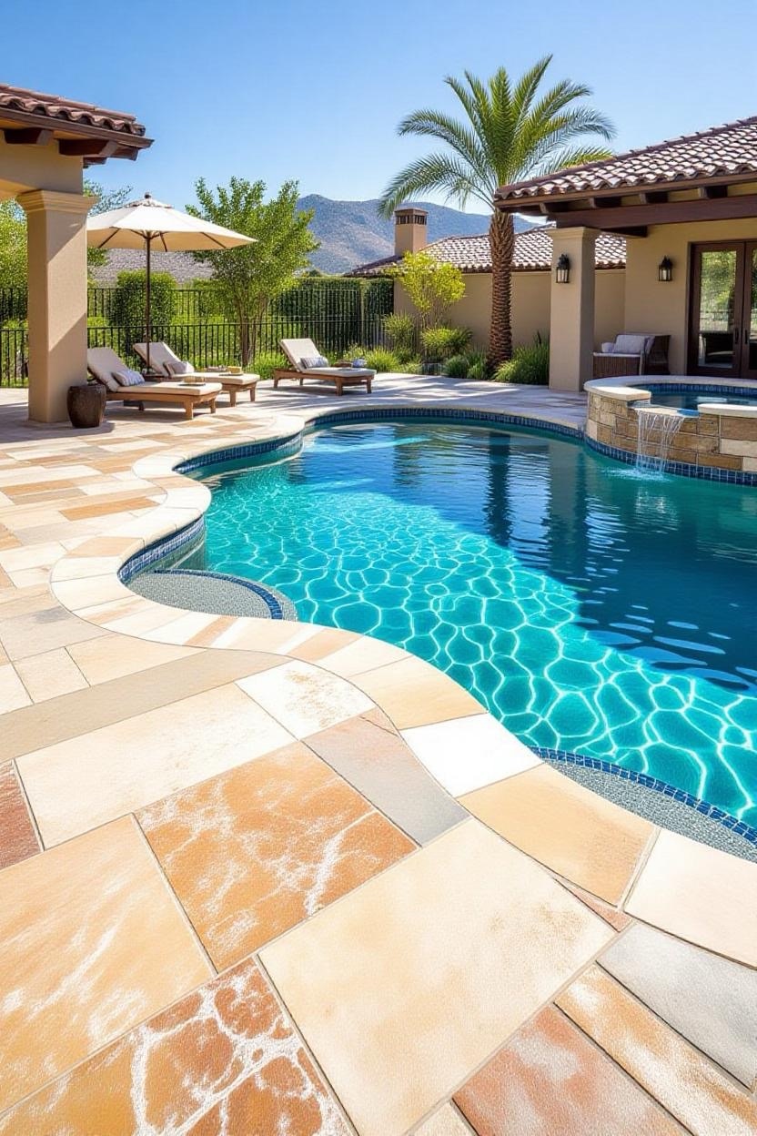 Natural stone tiles bring rustic charm and earthy textures, making your pool blend seamlessly with the surrounding landscape. Ideal for resort-style or nature-inspired backyards.