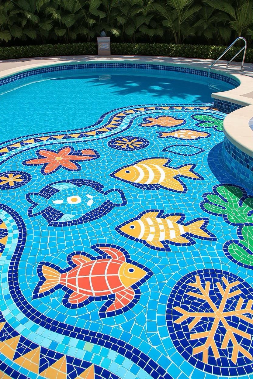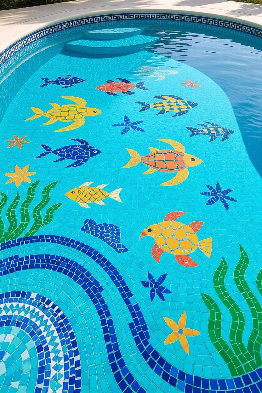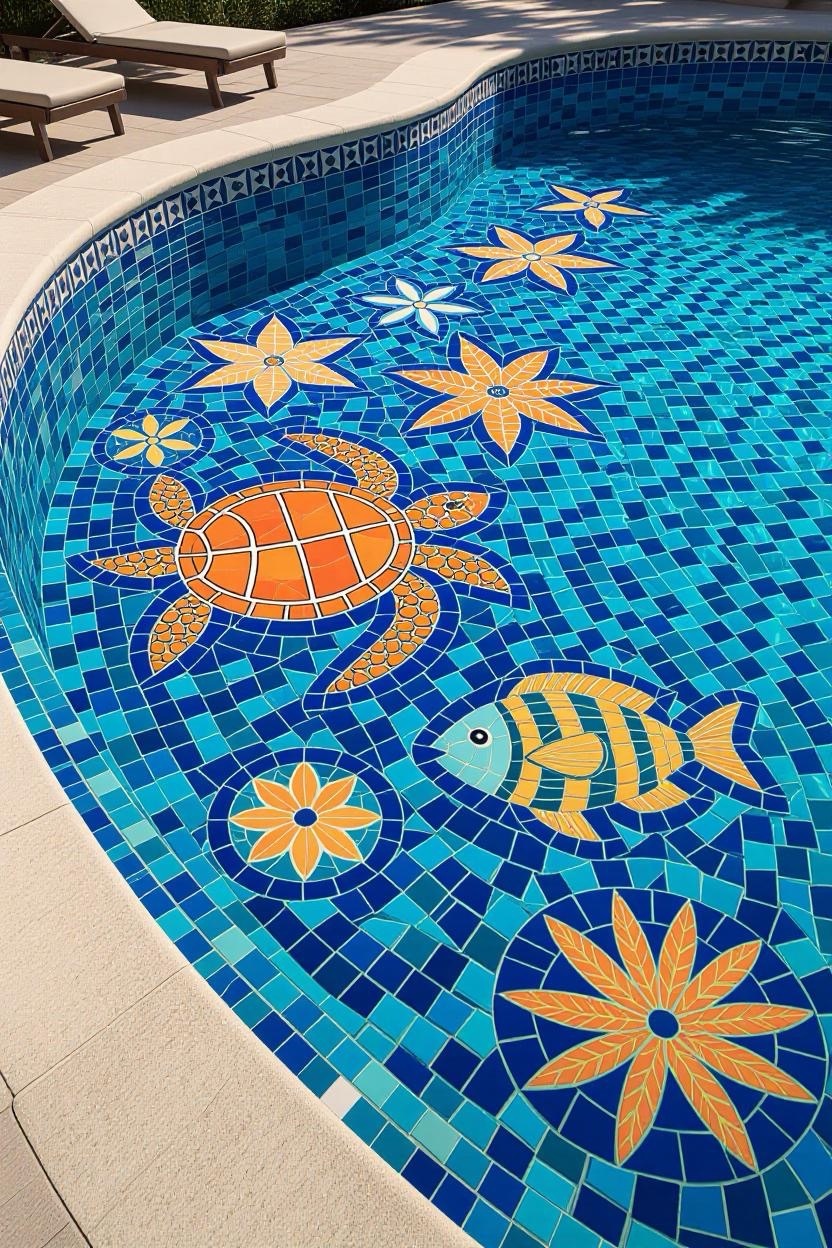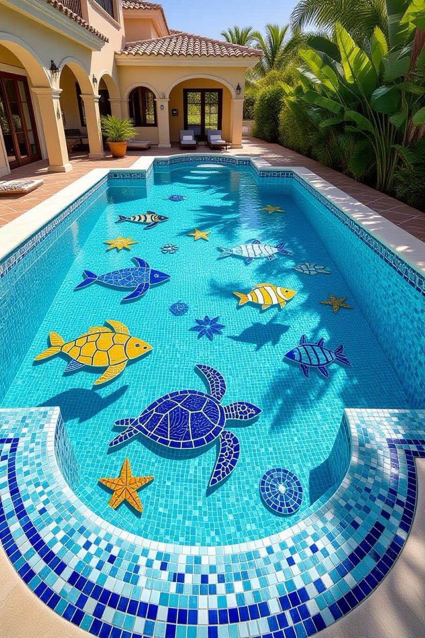 Turn your pool into a canvas with mosaic tile art. From marine life motifs to geometric patterns, these artistic accents make your pool unique and unforgettable.