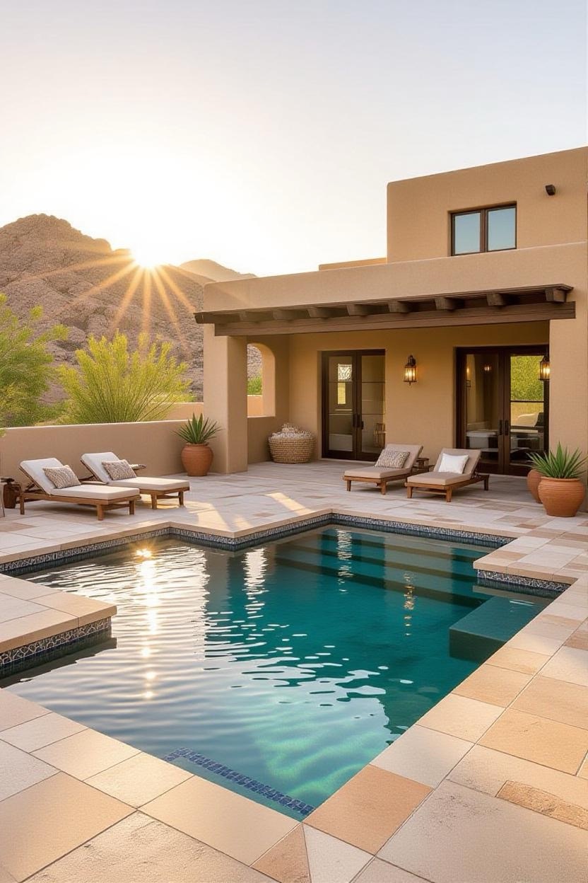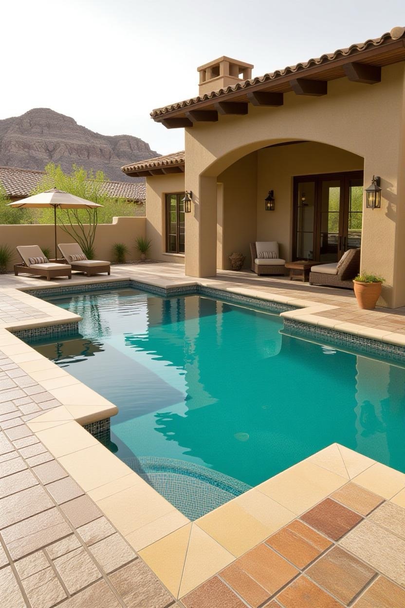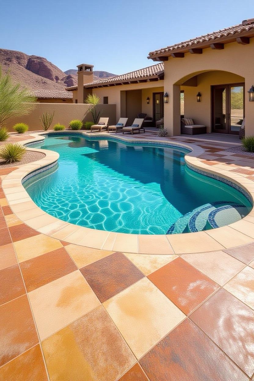 Earth-tone tiles in browns, tans, and creams give your pool a cozy, grounded look. They’re perfect for rustic, Mediterranean, or desert-inspired backyard escapes.