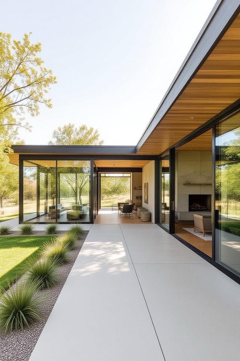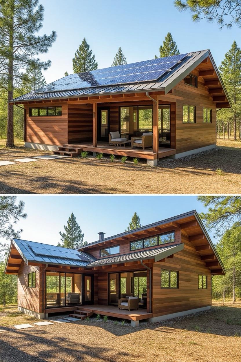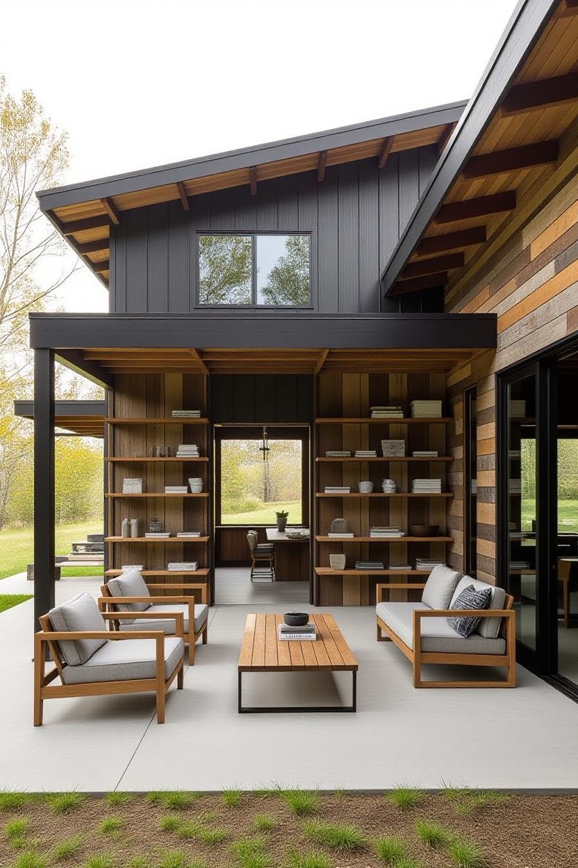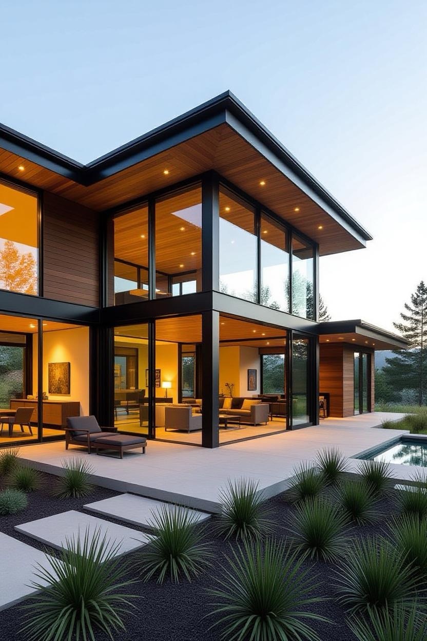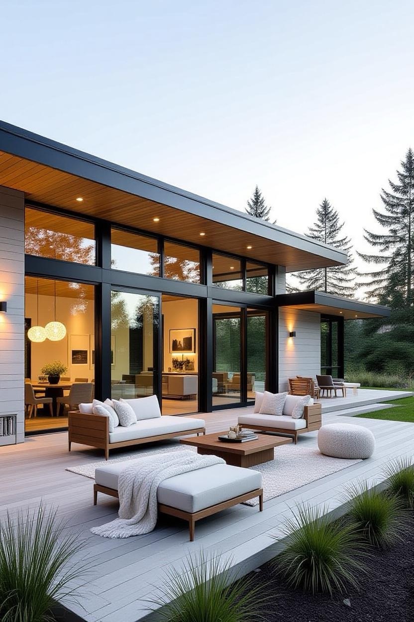 Here, the exterior keeps the signature horizontal layout but introduces bold materials like steel and reclaimed wood. Inside, minimalist furniture and open shelving emphasize contemporary comfort, making it perfect for design-forward homeowners who appreciate clean aesthetics.