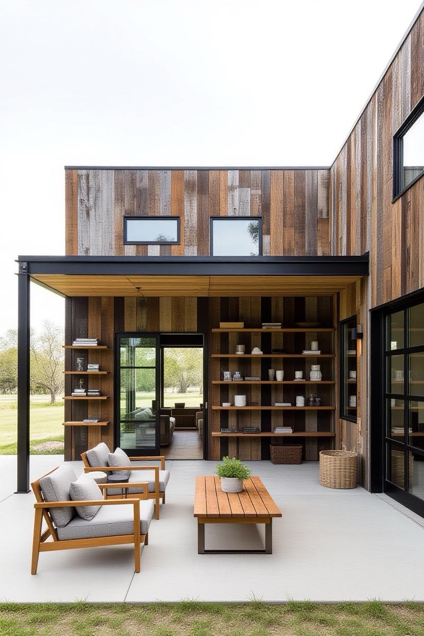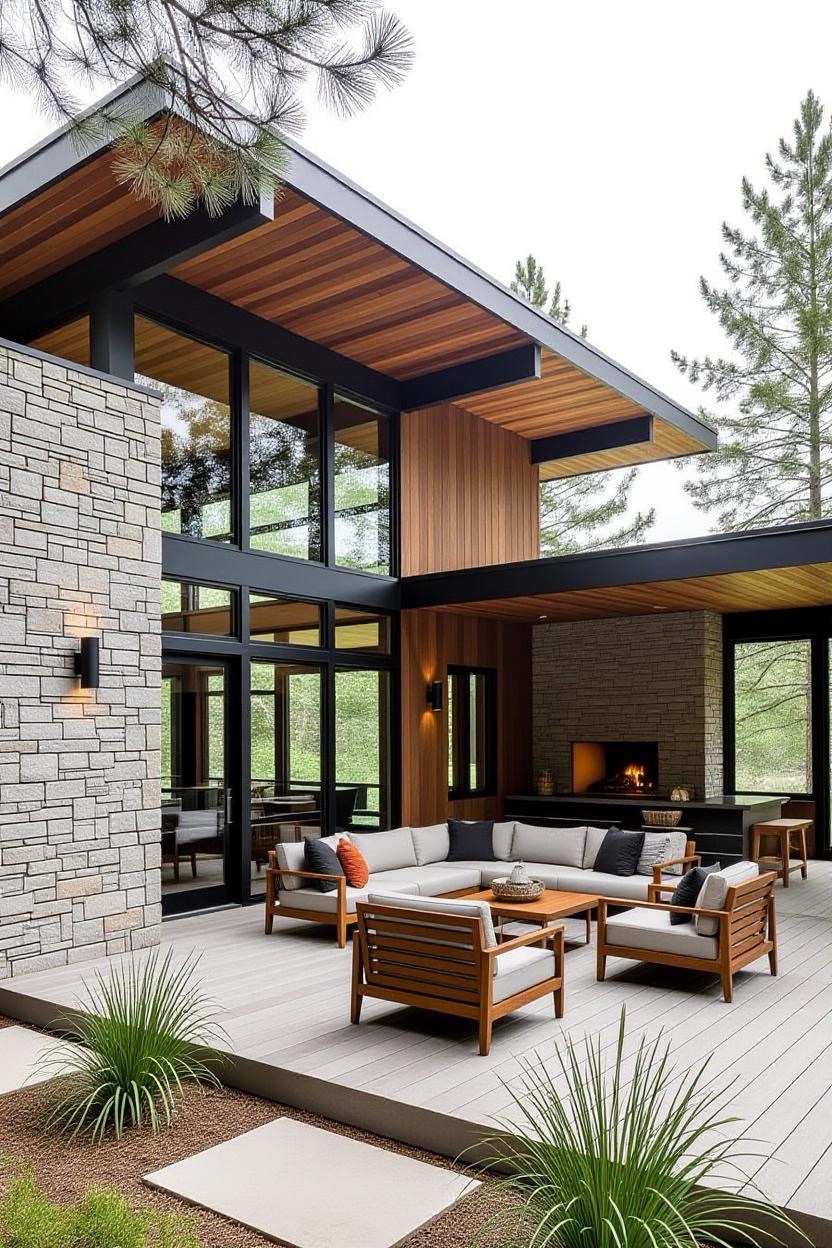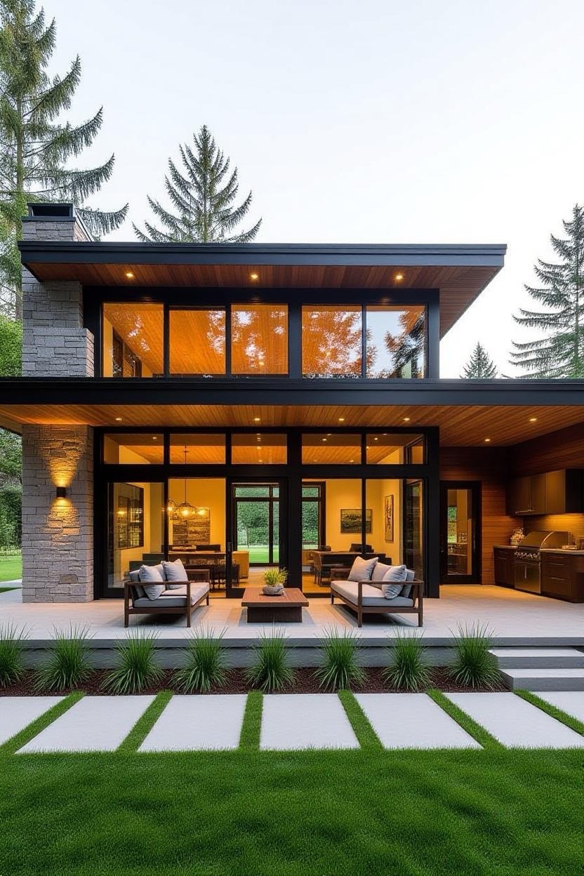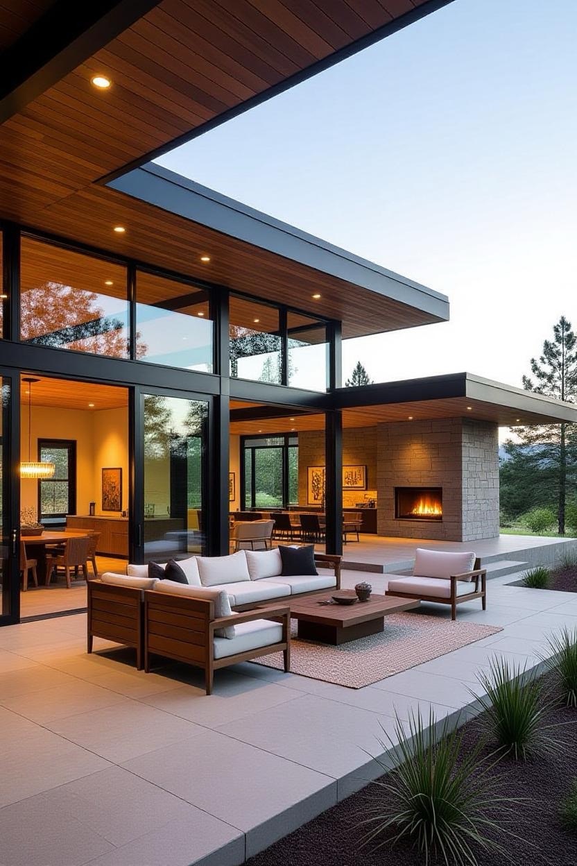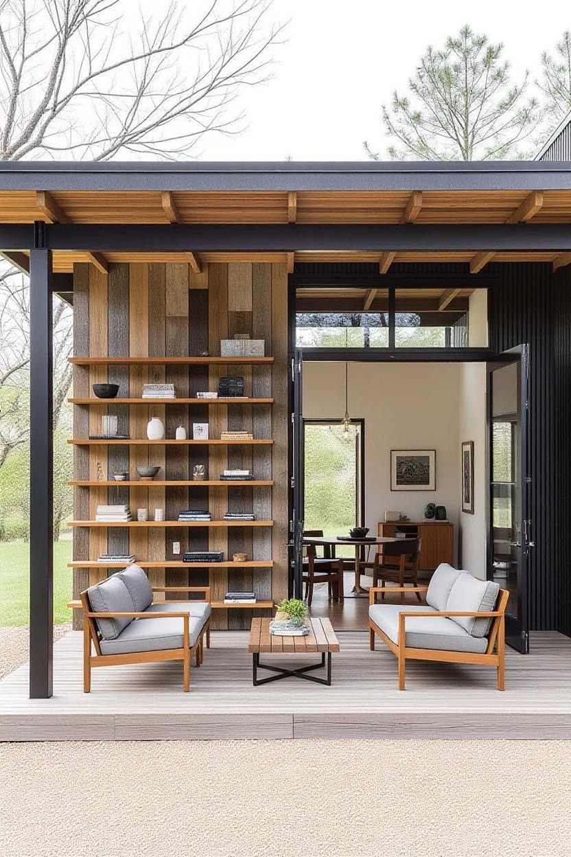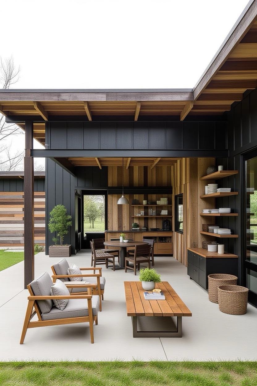 Here, the exterior keeps the signature horizontal layout but introduces bold materials like steel and reclaimed wood. Inside, minimalist furniture and open shelving emphasize contemporary comfort, making it perfect for design-forward homeowners who appreciate clean aesthetics.