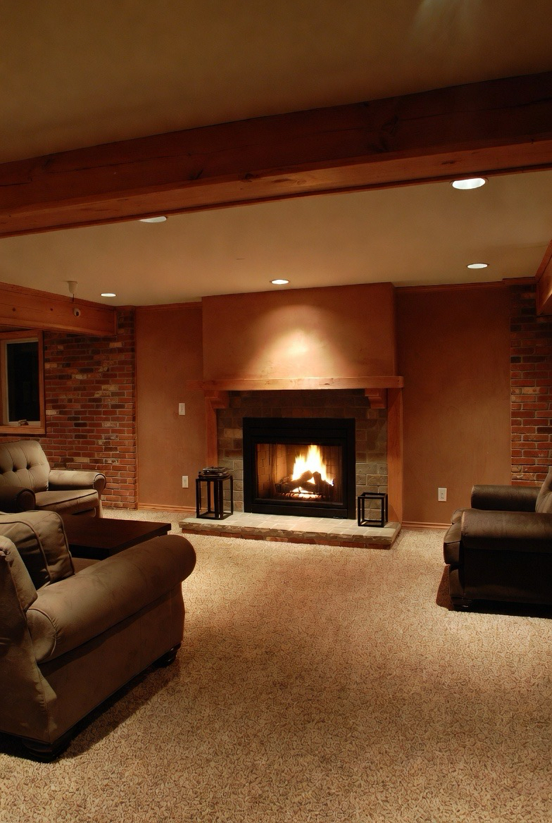 A fireplace instantly transforms a basement into a cozy retreat. Whether it’s a traditional gas fireplace or a realistic electric option, this feature becomes a natural focal point. Surround it with warm materials like stone, wood, or brick to enhance the inviting feel.