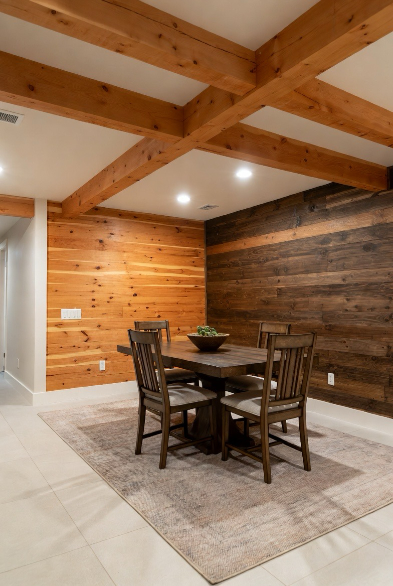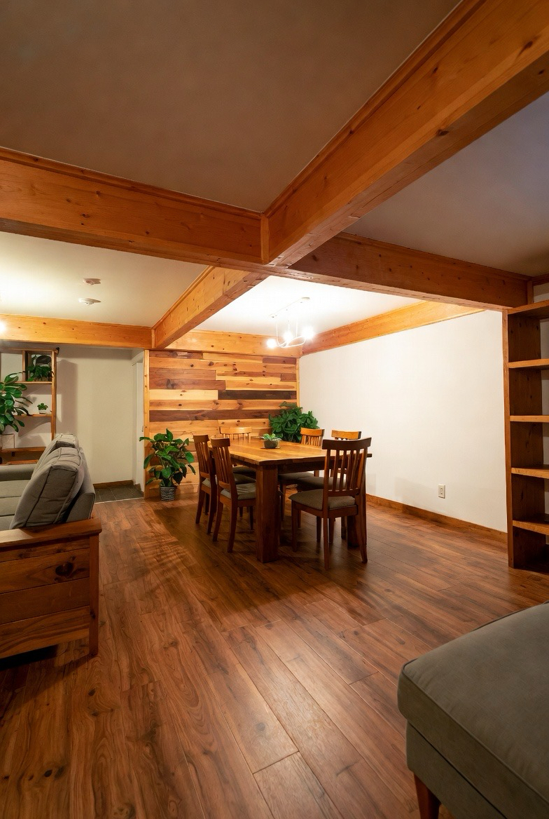 Incorporating wood elements helps counteract the cooler nature of basement spaces. Wood beams, paneling, furniture, or accent walls add natural warmth and texture. These details make the basement feel grounded and connected to the rest of the home.