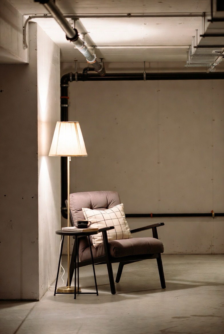 A quiet reading nook adds charm and comfort to a basement. A cozy chair, floor lamp, and small side table create a peaceful retreat. These intimate corners make the basement feel multi-functional and thoughtfully planned.