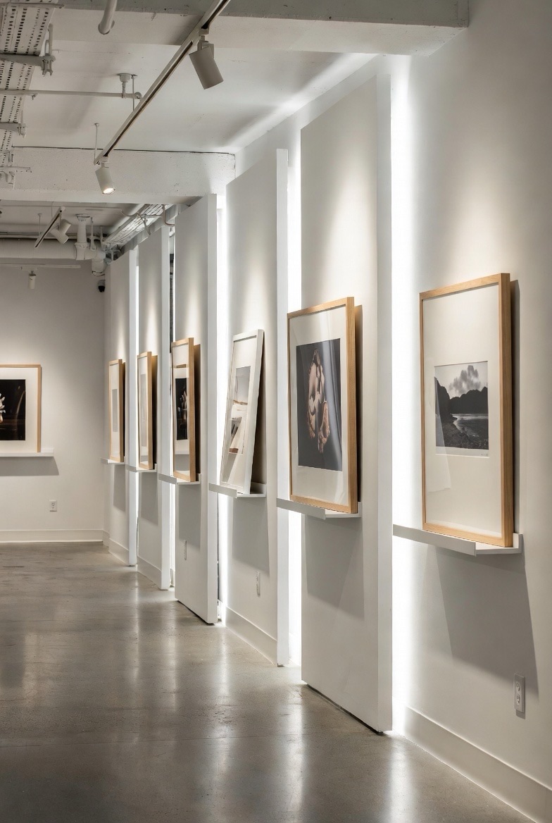 Showcase creativity with a basement turned art gallery. Use white walls, minimalist lighting, and floating shelves to display artwork or photography in an elegant, modern environment.