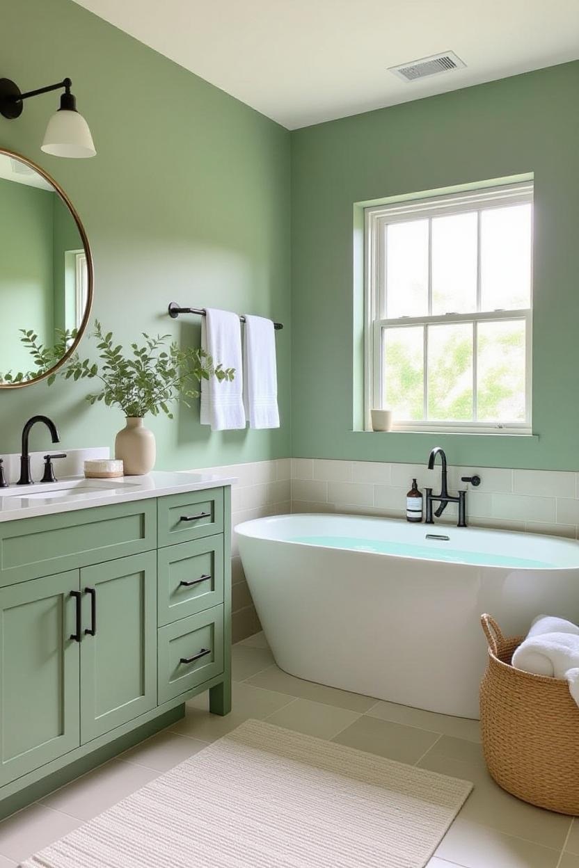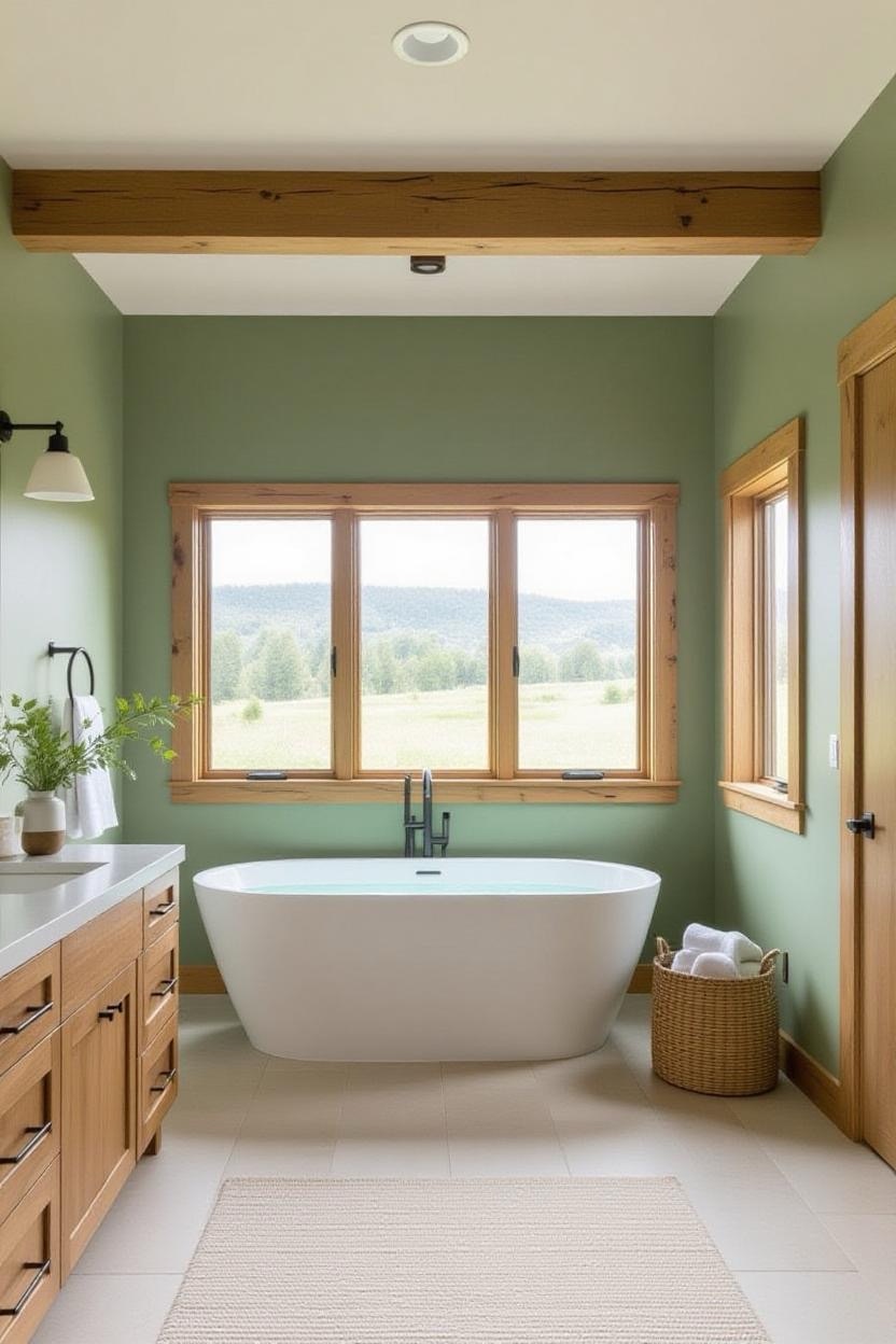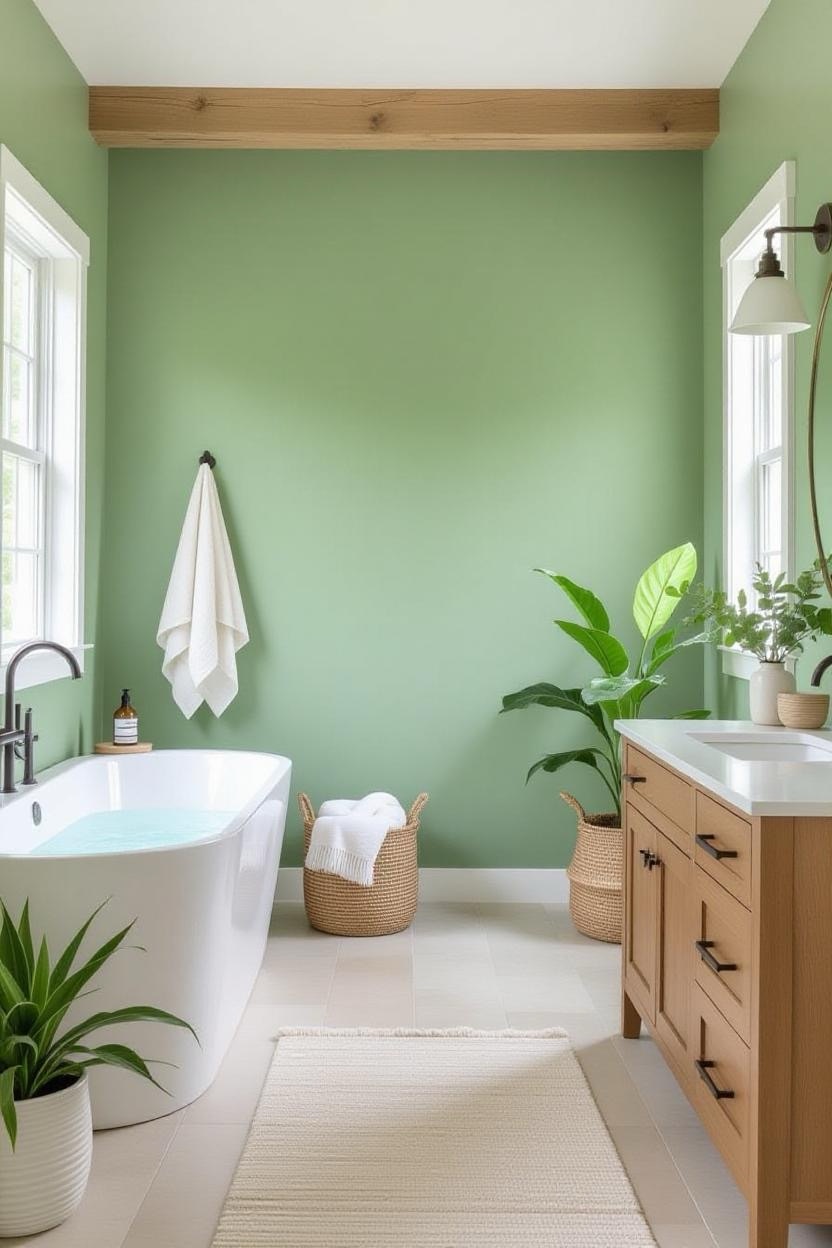 For a calm and refreshing vibe, sage green offers a soothing palette inspired by nature. It’s a versatile shade that complements both modern and rustic bathroom designs.