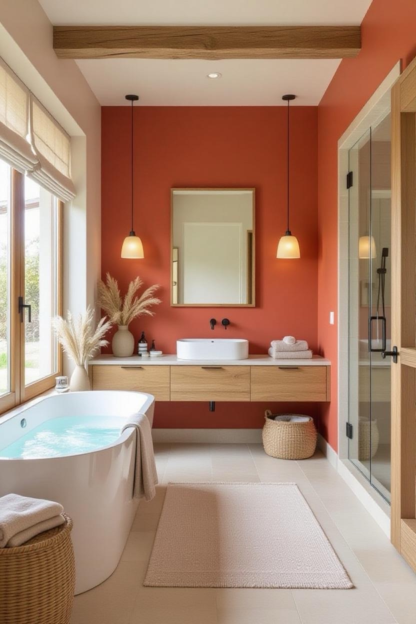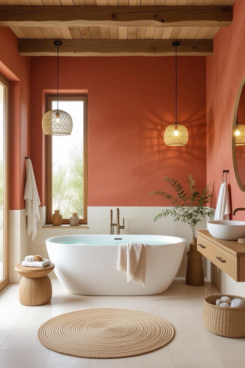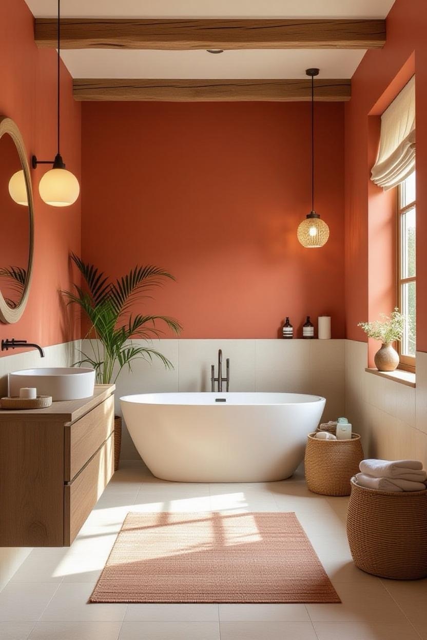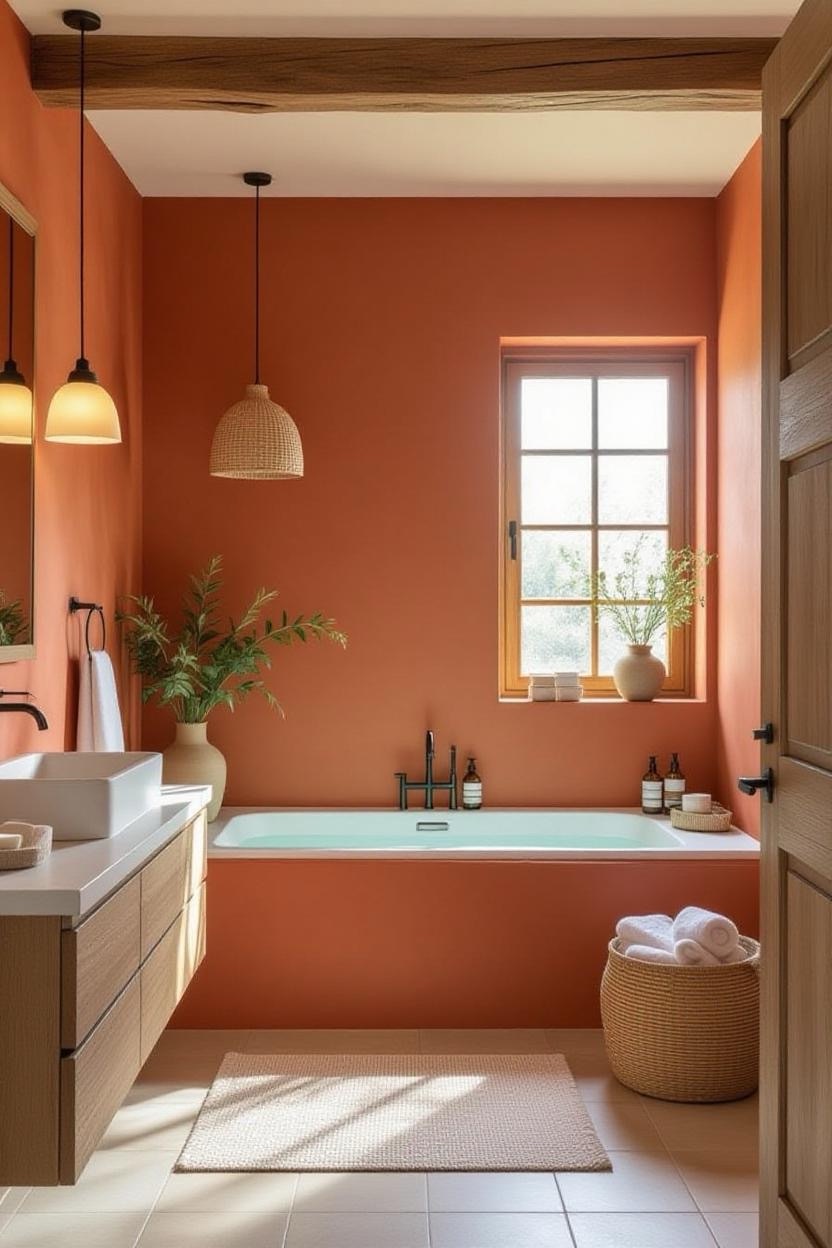 Terracotta tones introduce warmth and a touch of Mediterranean charm. This earthy color works well with natural wood accents and soft lighting.