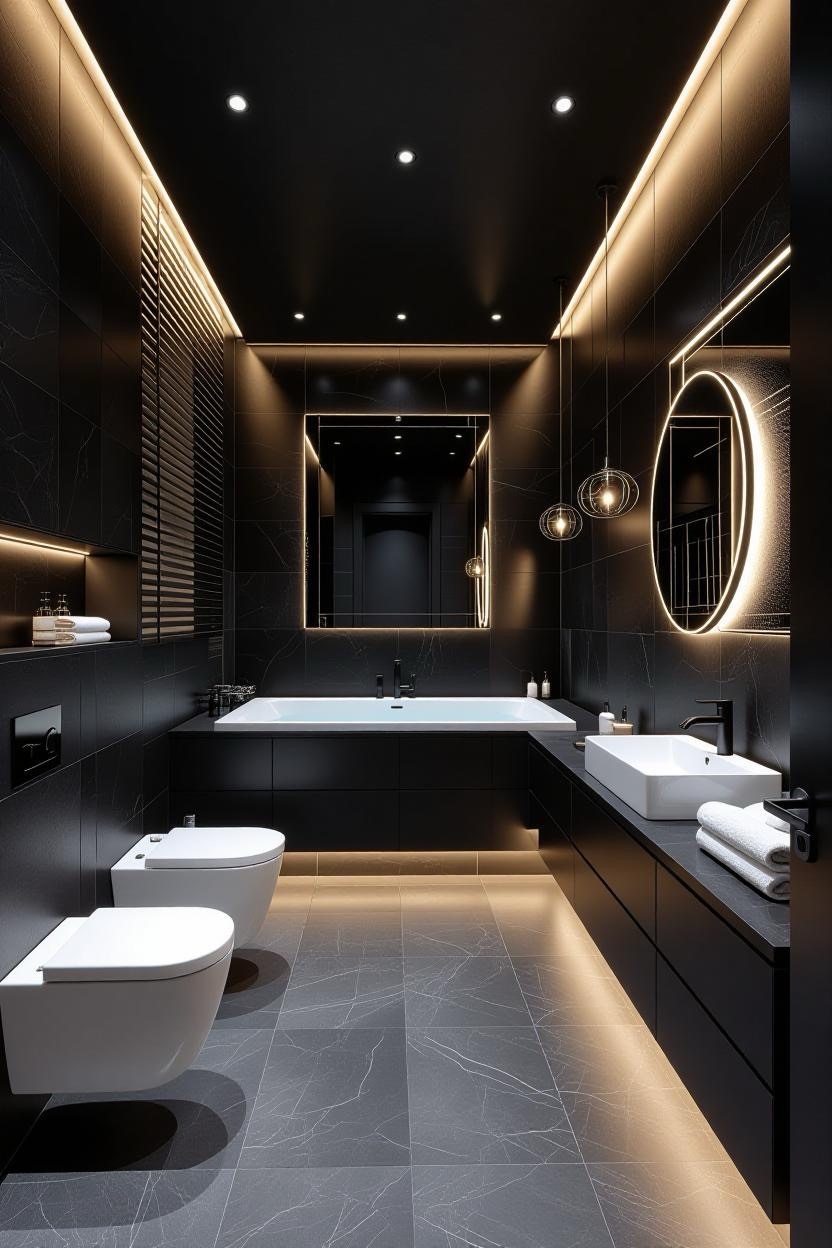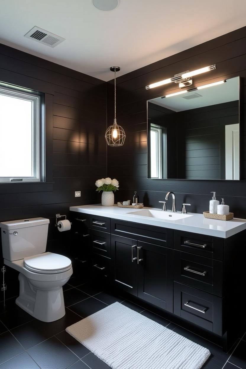 Painting a bathroom black may sound daring, but when paired with white accents and good lighting, it creates a sleek, modern aesthetic full of drama.