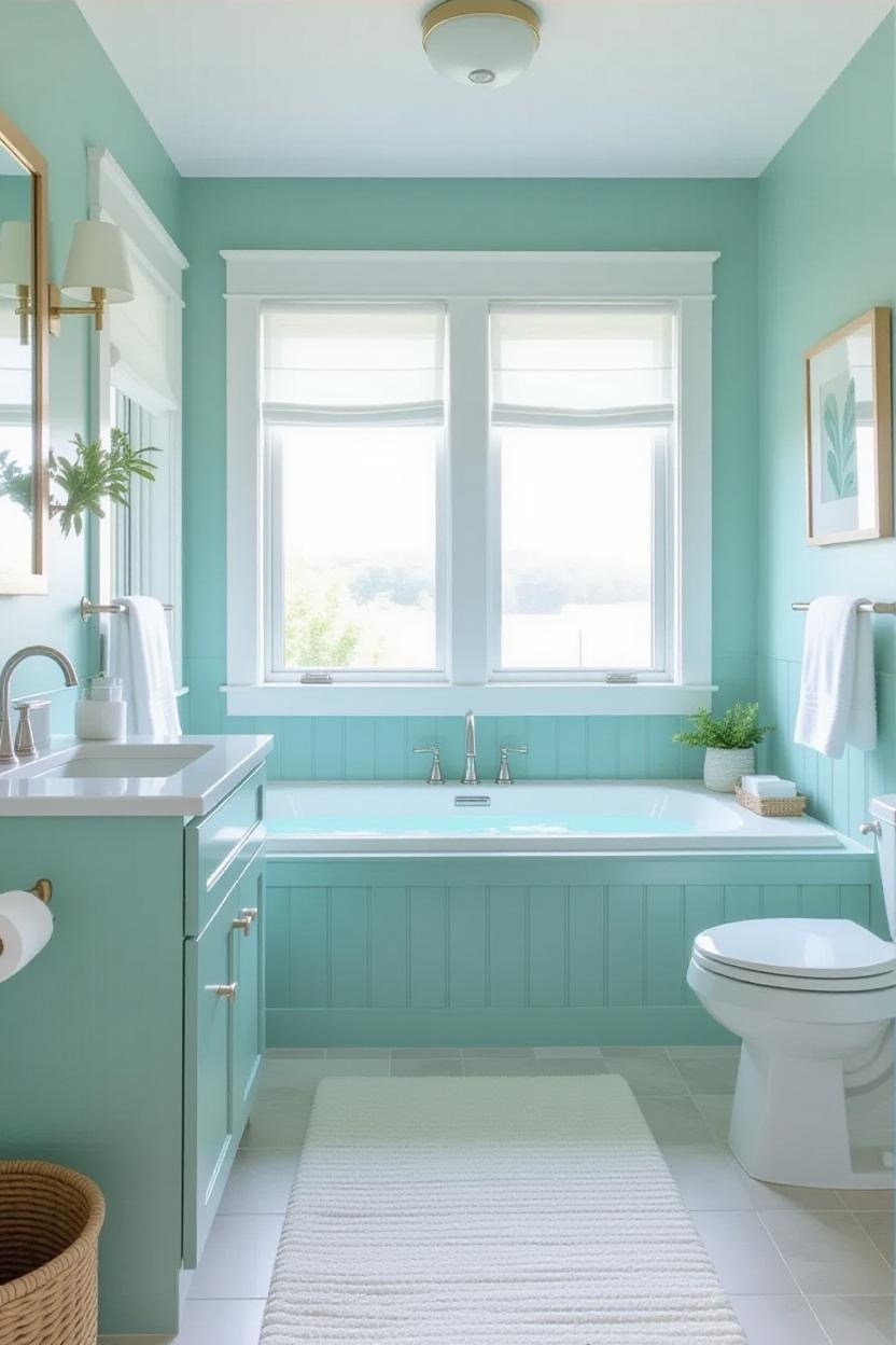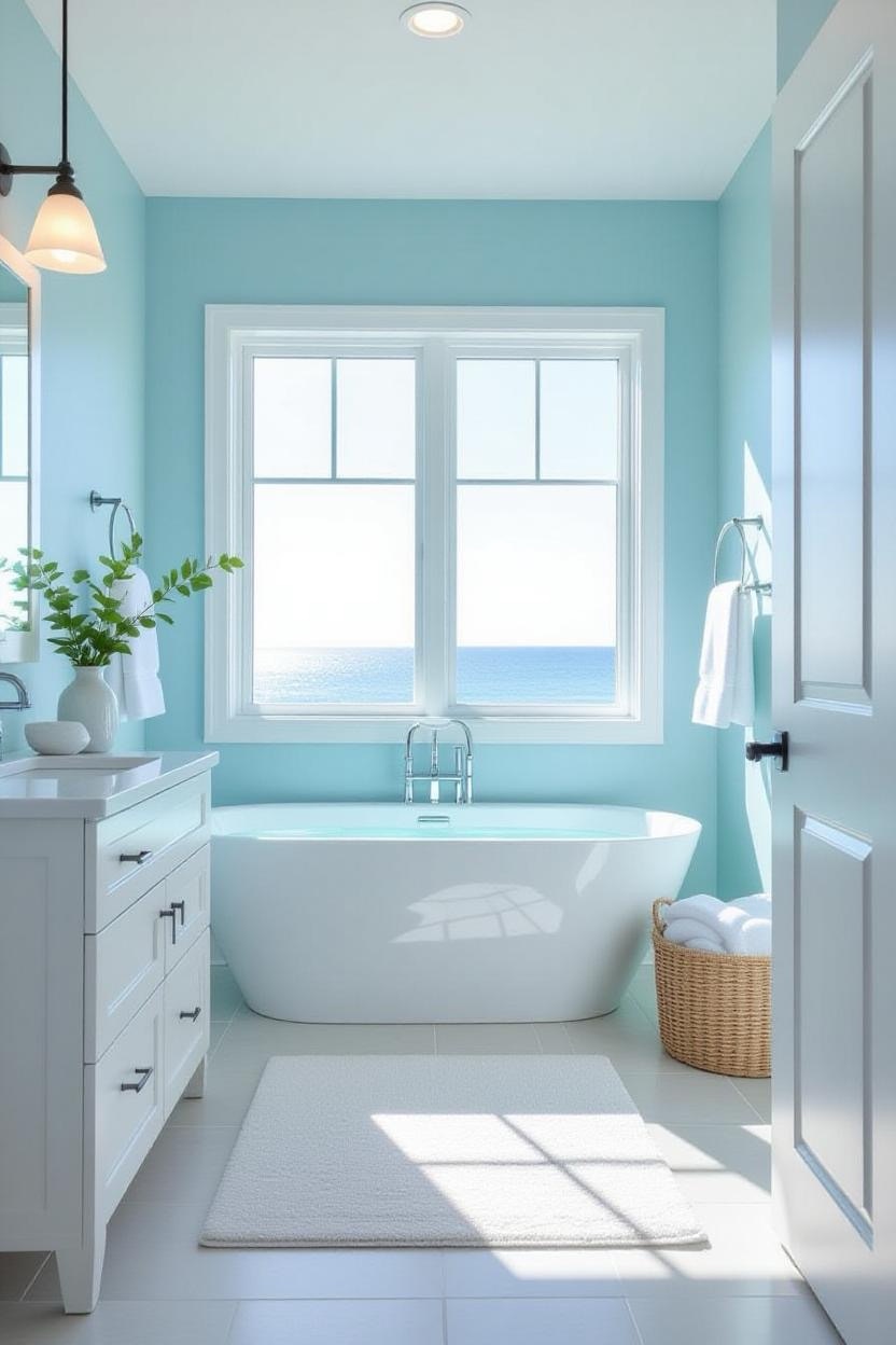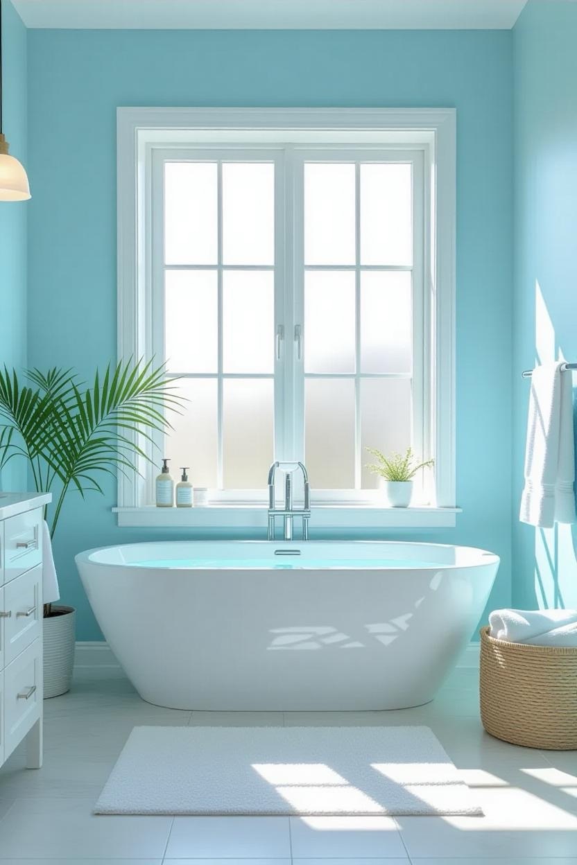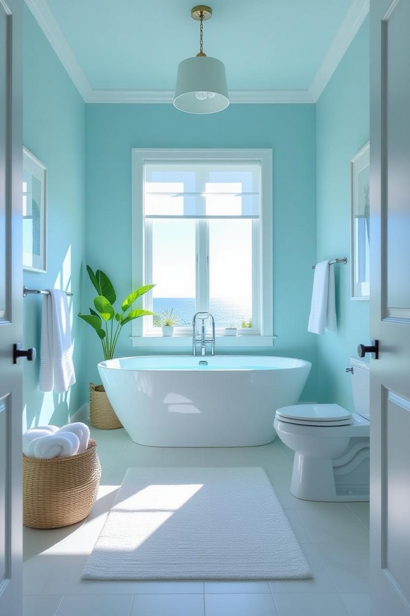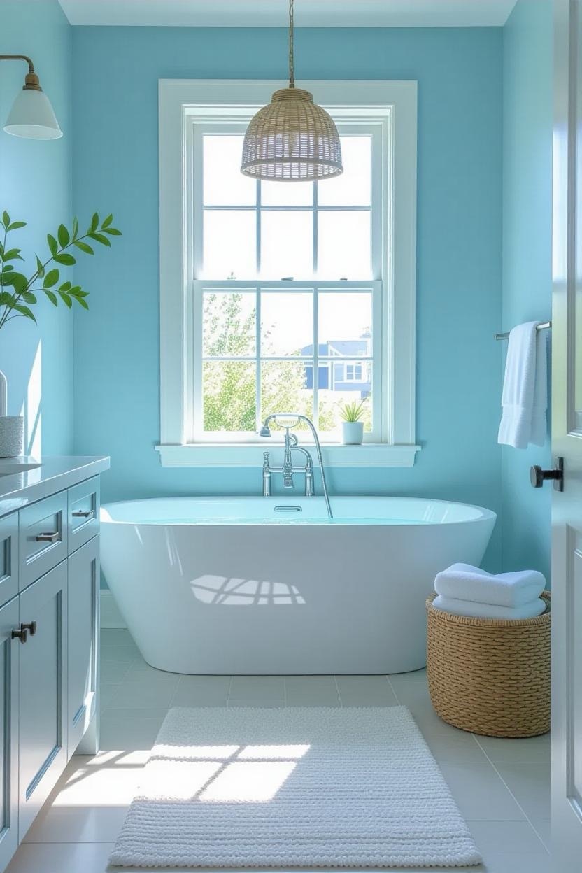 For a fresh and airy vibe, pale sky blue is an excellent choice. It makes bathrooms feel open and calming, like a breezy coastal retreat.
